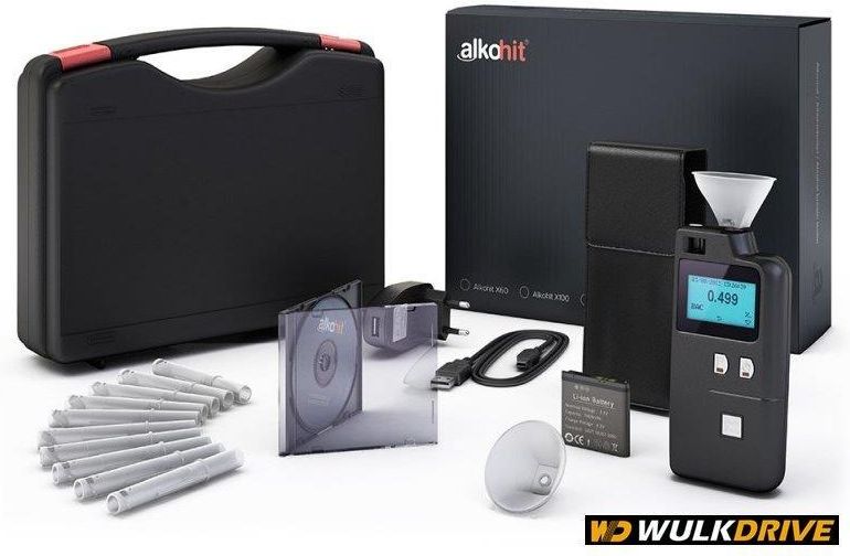Alkohit X100 to bez wątpienia profesjonalny alkomat łączący elegancję nowoczesności z szeregiem inteligentnych funkcji. Jedną z głównych zalet tego alkomatu jest stabilny czujnik elektrochemiczny - taki sam jak w modelu AH69, który został dopuszczony do kontroli kierowców w ruchu drogowym przez Krajowy Urząd Bezpieczeństwa Ruchu Drogowego w Portugalii. Alkohit ® X100 zdobył uznanie Fleet Menagerów podczas jednego z najważniejszych wydarzeń w branży flotowej w Europie – Fleet Awards, organizowanego przez Fleet Management Institute Central-Eastern Europe, promującego liderów polskiego rynku flotowego. Zwycięzcy plebiscytu zostali ogłoszeni w trakcie uroczystej Gali Fleet Awards 2011, gdzie Alkohit X100 został uznany: Alkomat Alkohit ® X100 przeznaczony jest dla służb porządkowych, instytucji, firm oraz użytkowników indywidualnych, którzy posiadają wysokie wymagania co do dokładności oraz stabilności pomiarów w czasie. Alkomat na życzenie Klienta może posiadać świadectwo wzorcowania** wydane przez Laboratorium Wzorcujące akredytowane przez Polskie Centrum Akredytacji. Dzięki temu alkomat jest „dowodowy” - wydruki wyników mogą stanowić materiał dowodowy w sprawach sądowych*. Zastosowanie w X100 jednego z najlepszych czujników elektrochemicznych z gamy Alkohit ® oraz 32 bitowego mikroprocesora sprawia, że przeprowadzenie ponad 350 pomiarów w ciągu jednej godziny staje się realne. Precyzyjne oraz szybkie pomiary to nie jedyne wymagania, jakimi kierowano się podczas tworzenia tego modelu. Alkohit X100 zaprojektowany został z myślą o jak najniższych kosztach eksploatacyjnych, z uwagi na dużą ilość pomiarów w firmach oraz instytucjach. To fundamentalne założenie zostało osiągnięte przez takie cechy jak możliwość wykonywania pomiaru za pomocą nasadki lejkowej oraz wyposażenie alkomatu w baterię litowo-jonową (podobną jak w telefonach komórkowych) ładowaną z sieci elektrycznej lub przez port USB komputera. Czas pracy na naładowanej baterii przez około 20 godzin to niewątpliwie zaleta. Alkohit X100 został naszpikowany wieloma innymi funkcjami, takimi jak licznik oraz pamięć pomiarów, sygnalizację rozładowania baterii, pomiary w trybie manualnym i automatycznym, datę oraz zegar czasu rzeczywistego, funkcję automatycznego wyłączenia oraz inne. Unikalne i innowacyjne mocowanie ustników w modelach Alkohit ®, z możliwością obrotu o 360° pozwala na komfortowe przeprowadzanie pomiarów. Takie rozwiązanie zwiększa bezpieczeństwo w przypadku wystąpienia czynników zewnętrznych powodujących poruszanie się urządzenia w trakcie wdmuchiwania powietrza (ustnik przekręci się, a nie wyrządzi szkody osobie badanej). Również zastosowanie ustnika lejkowego, na którym można wykonać do kilkudziesięciu tysięcy pomiarów jest nieczęsto spotykane wśród alkomatów dowodowych. Wszystkie te zalety powodują, że bez wątpienia analizator wydechu Alkohit ® X100 jest idealnym produktem (pod względem cenowym i funkcjonalnym), który może być dowodowym (po otrzymaniu świadectwa wzorcowania) oraz posiada możliwość wykonywania pomiarów za pomocą ustników oraz nasadki lejkowej. Zaawansowana technologia pomiarowa pozwoliła zastosować w Alkohit X100 układ kontroli wdmuchiwania powietrza, pobierania próbki, system kontroli blokujący wykonanie pomiaru, jeśli na czujniku znajduje się alkohol z poprzedniego pomiaru oraz dwuwylotowy czujnik elektrochemiczny posiadający elementy platyny i ultranowoczesny procesor. Alkohit X100 posiada system umożliwiający badania osób nieprzytomnych, z objawami POChP (pasywny tryb pomiaru) lub innych, u których występuje problem z wdmuchnięciem minimalnej ilości powietrza. Jest to przydatne zwłaszcza placówkom medycznym, służbom ratunkowym, izbom wytrzeźwień czy domom opieki społecznej gdzie często spotykany jest ten problem. Wielozadaniowość tego wyjątkowego alkomatu idzie jeszcze dalej oferując opcjonalnie moduł bluetooth pozwalający na bezprzewodowy wydruk pomiaru z kilkudziesięciu alkomatów Alkohit X100 na jednej drukarce termicznej. Darmowy program umożliwia zgranie 20 000 pomiarów na komputer oraz przeniesienie ich do arkusza kalkulacyjnego (np. do pliku Excel w przypadku użytkowników posiadającym oprogramowanie firmy Microsoft). Jednym słowem jest to alkomat dla PROFESJONALISTÓW. Firma DKD stawiająca na wysoką jakość oferowanych produktów i zadowolenie Klientów stworzyła specjalny PROGRAM DARMOWYCH KALIBRACJI. Dzięki niemu umożliwiono Państwu wykonanie BEZPŁATNYCH kilku kalibracji w okresie podstawowej gwarancji (w zależności od modelu), a tym samym minimalizując koszty związane z ich eksploatacją. Kalibracja wykonywana jest w nowoczesnym laboratorium bezpośrednio u producenta DKD z wykorzystaniem najnowszych narzędzi do kalibracji, co zapewnia precyzyjne ustawienie parametrów odpowiedniego modelu alkomatu względem zadanego wzorca. Do kalibracji wykorzystywane są wysokiej technologii symulatory firmy GUTH. Więcej informacji w karcie gwarancyjnej wybranego modelu. Podstawowy zestaw pakowany w pudełku kartonowym zawiera: Alkohit X100 Baterię wielokrotnego ładowania Li-ion 1000mAH 3,7V Kabel do połączenia Alkohit X100 z komputerem 2 szt. lejków (nasadek lejkowych) 10 szt. ustników - każdy pakowany osobno Ładowarkę do gniazdka sieci elektrycznej Płytę CD z programem do zgrywania danych Etui na alkomat Instrukcję obsługi zawierającą: mapę limitów w krajach Europy Kartę gwarancyjną zawierającą: dokument potwierdzający kalibrację urządzenia parametry kalibracyjne Urządzenie jest standardowo skalibrowane w promilach ‰, ale na życzenie Klienta może zostać skalibrowane również w mg/L lub innych jednostkach. Alkomaty z dołączonymi świadectwami wzorcowania kalibrowane są w mg/L jak większość alkomatów dowodowych. OPCJONALNIE alkomat Alkohit X100 jest dostępny w walizeczce plast