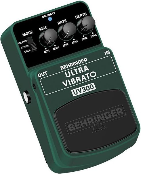 BEHRINGER ULTRA VIBRATO UV300 Doświadcz klasycznych, przestrzennych efektów vibrato lat 60. i 70. Ten produkt BEHRINGER został zaprojektowany, aby konkurować z wiodącymi produkami na rynku. Regulacja w zakresie: Depth, Rate, Rise and Mode. Niebieskie diody LED sygnalizujące włączanie/wyłączanie efektu oraz stan baterii. Zasilanie z baterii 9 V lub za pomocą zasilacza DC BEHRINGER PSU-SB (opcja). Wysokiej klasy elektroniczny włącznik on/off zapewniający najwyższą integralność sygnału w trybie bypass. Wysoka jakość komponentów i wyjątkowo wytrzymała konstrukcja zapewnia długą żywotność. Opracowany i zaprojektowany przez BEHRINGER Niemcy. Numer artykułu: 115986