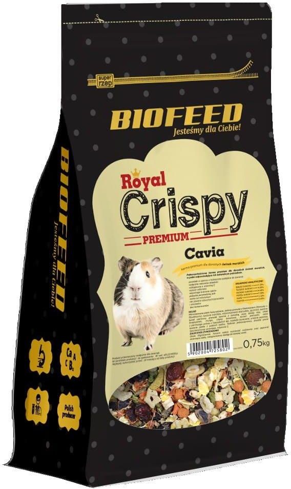 BIOFEED Royal Crispy Premium Cavia 0,75kg BIOFEED ✅ ✔️ ➡️ Czas wysyłki (w godzinach): 24 Waga produktu: 750 g Rodzaj opakowania: Worek Bez konserwantów: Tak Forma dawkowania: Stały Bez soi: Tak Bezglutenowe: Nie Bez cukru: Nie Specyficzne potrzeby zwierzęcia: Brak szczególnych potrzeb Główny smak: …