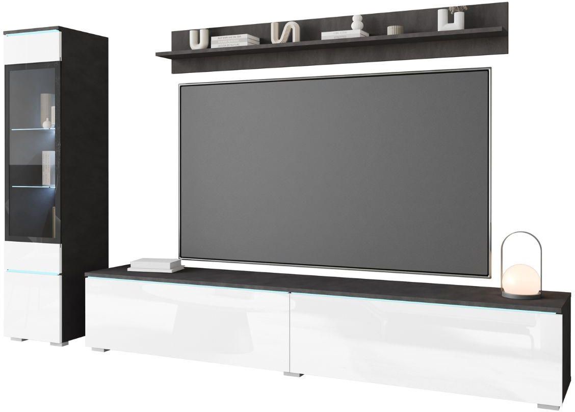 Bratex Komplet mebli do salonu LED Vera I czarny/biały połysk (10823) Pułtusk