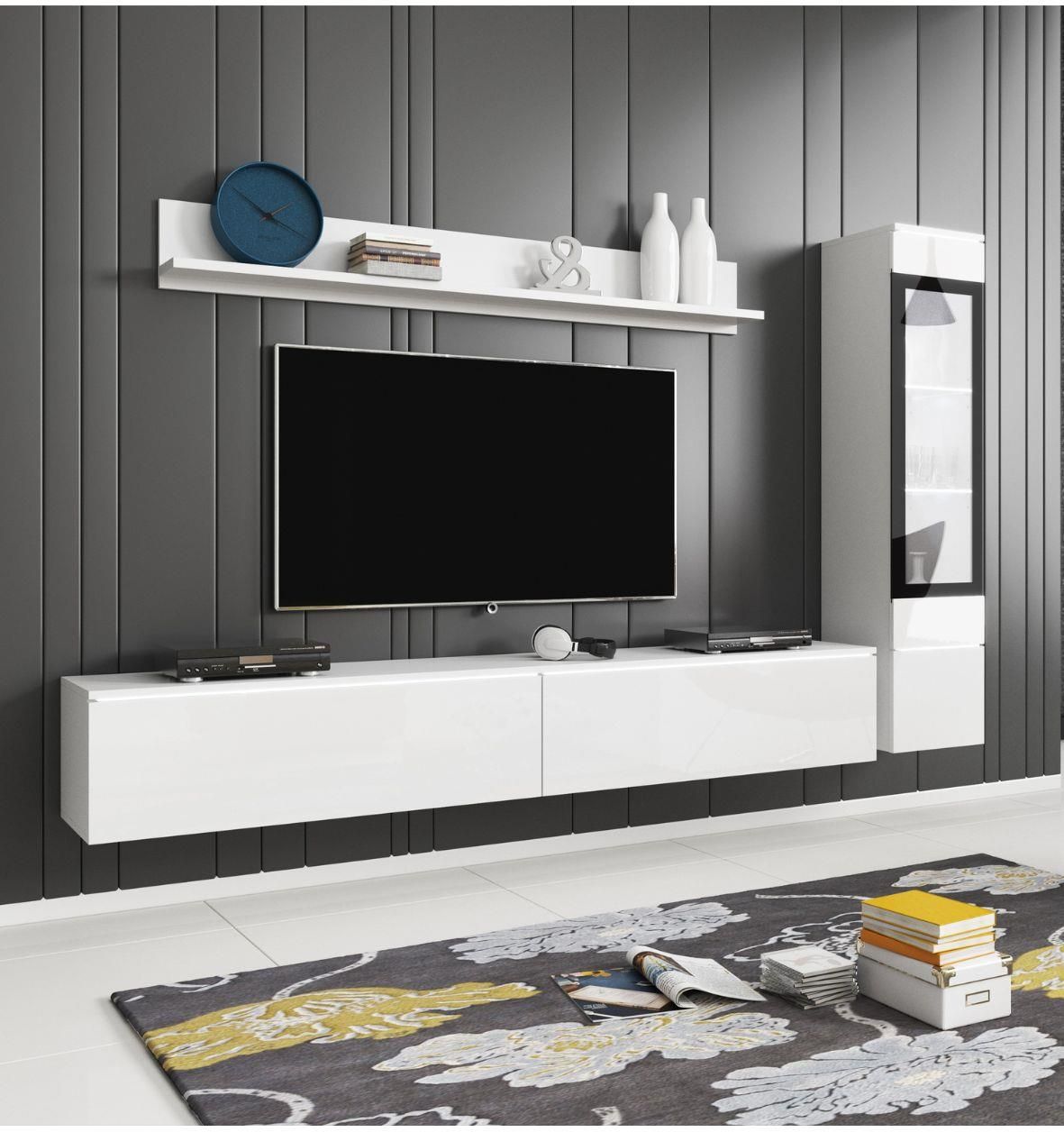 Bratex Podwieszana meblościanka do salonu LED Vera I biały połysk (VRBAW01) (10806) Pułtusk