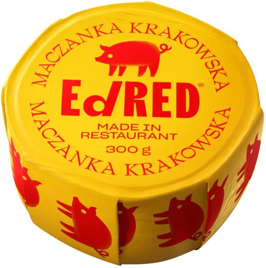 EdRED - Maczanka po krakowsku GOTOWE DANIE - 300 g KONSERWA Maczanka Krakowska - danie mięsne w puszce inspirowane tradycyjną kuchnią małopolską, w restauracyjnej jakości. Soczyste plastry wieprzowiny duszone w aromatycznym sosie z cebulą, majerankiem i pieprzem. Idealne do podania w bułce lub z ziemniakami. Gotowe danie premium, bez konserwantów i sztucznych dodatków. Danie gotowe do podgrzania - lasyka smaku w nowoczesnej odsłonie! 100% naturalnych składników. Puszka z wygodnym wieczkiem typu easy open. Nie wymaga otwieracza! Bez konserwantów i oleju palmowego. Ekologiczne opakowanie. Konserwę możesz wrzucić do plecaka lub torebki i zjeść, gdzie tylko zechcesz! Kolorowe wzornictwo i wyborna jakość sprawiają, że Mielonka Najdroższa to doskonały pomysł na niebanalny prezent. Rzemieślnicza konserwa od najlepszych szefów kuchni. Dzięki zastosowaniu innowacyjnej technologii mielonka zachowuje pełnię smaku i odpowiednią strukturę. Konserwa zamknięta w puszce wytrzyma nawet 2 lata w temperaturze pokojowej. Szczegółowe informacje Konserwa: Maczanka po krakowsku 100% naturalnych składników. Bez konserwantów i oleju palmowego. Rzemieślnicza puszka w papierowym opakowaniu z informacjami. Przechowywanie: w temperaturze pokojowej. Składniki: mięso wieprzowe 50%, cebula 16,7%, czosnek świeży, kminek ziarno, pieprz czarny, olej, sól Masa netto: 300 g Wartość odżywcza w 100 g produktu: tłuszcz - 9,9 g, w tym kwasy tłuszczowe nasycone - 3,4 g; węglowodany - 9,5 g, w tym cukry- 3,5 g; białko - 15,1 g; sól - 0,7 g Wartość energetyczna kJ - 778 kcal - 186 EAN13: 5904083584288 Restauracja produkująca pierwsze w Polsce konserwy rzemieślnicze Ed Red to nie gigantyczny producent, a wysokiej klasy restauracja, która zaczynała w 2014 roku w Krakowie. To tam goście mogli poznać smak nowoczesnej polskiej kuchni i najlepszych steków. Specjaliści Ed Red, jako mistrzowie w swoim fachu, zaskoczyli innowacyjnym podejściem do sztuki kulinarnej. Również jako pierwsi sezonowali steki na sucho! Ed Red może poszczycić się wyróżnieniami od najważniejszych organizacji w świecie gastronomii: Michelin Gault & Millau Slow Food