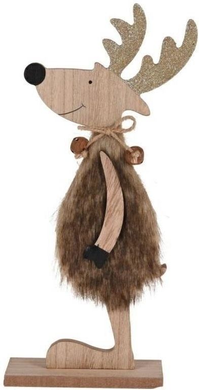 Figurka Renifer brązowy z drewna patrzący w lewo Pułtusk