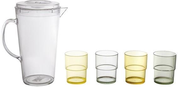 Zestaw Soleil: Praktyczność podczas pikników i imprez plenerowych Zestaw dzbanka i 4 szklanek z tworzywa sztucznego to niezbędny dodatek do udanych pikników, kempingu lub imprez w plenerze. Dzbanek o pojemności zapewniającej doskonałe warunki do serwowania napojów dla grupy, wraz z 4 kolorowymi szklankami, tworzy kompletny zestaw do podawania ulubionych napojów na świeżym powietrzu. Innowacyjna konstrukcja szklanek umożliwia ich sprytne schowanie wewnątrz dzbanka, co sprawia, że są one łatwe do transportu, na przykład podczas wycieczki rowerowej. Dodatkowo, możliwość mycia w zmywarce ułatwia utrzymanie zestawu w czystości po użyciu. Dzbanek wyposażony w przykrywkę gwarantuje bezpieczeństwo podczas przemieszczania się, chroniąc napój przed wylaniem lub niechcianymi wpadnięciami owadów. Kompaktowy design zestawu sprawia, że jest łatwy w przechowywaniu i zabieraniu ze sobą w podróż, jednocześnie dodając elegancji i stylu każdemu piknikowi czy imprezie plenerowej. Zestaw zawiera dwie szklanki w kolorze transparentnym, dwie w kolorze dymionym oraz dzbanek w kolorze transparentnym, co dodaje mu atrakcyjnego i harmonijnego wyglądu. Upewnij się, że to dobry wybór! Dzbanek i 4 szklanki to kompletny zestaw do serwowania napojów podczas pikników i imprez plenerowych. Konstrukcja umożliwiająca schowanie szklanek wewnątrz dzbanka ułatwia transport, na przykład podczas wycieczek rowerowych. Możliwość mycia w zmywarce zapewnia łatwe utrzymanie czystości po użyciu. Przykrywka dzbanka chroni napój przed wylaniem i niepożądanymi wpadnięciami owadów. Kompaktowy design i harmonijne zestawienie kolorów dodają elegancji i stylu każdej imprezie plenerowej.