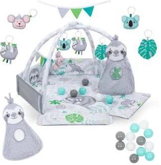 Mata edukacyjna Kidwell YOGA Dzięki podnoszonym bokom daje wiele możliwości: Rozłożona - to duża przestrzeń do zabawy. Z podniesionymi bokami - to przytulny plac zabaw i miejsce odpoczynku. Z piłeczkami tworzy prywatny basenik. Wielofunkcyjność pozwoli uniknąć monotonii i zapewni zainteresowanie matą przez długi czas. Z maty Kidwell YOGA mogą korzystać dzieci już w pierwszych tygodniach życia. Dzięki podnoszonym brzegom mata łatwo dopasuje się do potrzeb dziecka – zmieni się w suchy basen, półotwarty kojec lub dużą, rozłożoną matę. Ciekawy i kolorowy nadruk przyciąga wzrok oraz rozwija zdolności motoryczne i manualne dziecka. Praktyczny worek na piłeczki pomaga rozwinąć koordynację i wyobraźnię dziecka, a rodzicowi utrzymać porządek. Mata stymuluje zmysły: dotyk, słuch i wzrok, pozytywnie wpływa na ich rozwój. Dziecko sięgając po zabawki wzmacnia mięśnie oraz poprawia zdolność utrzymywania główki w określonej pozycji. Czy wiesz, że? W dzisiejszych czasach od najmłodszych lat istnieje zagrożenie przebodźcowania. Z każdej strony do dziecka docierają bodźce zewnętrzne, takie jak dźwięki, obrazy czy zapachy. Ich nadmiar prowadzi do nieprawidłowej reakcji organizmu co objawia się płaczliwością i rozdrażnieniem. Dlatego warto zadbać o to, aby dziecko miało przestrzeń do wyciszenia. Mata YOGA została zaprojektowana tak, aby rozwijać i stymulować odpowiednią ilość bodźców jednocześnie nie przeciążając układu nerwowego. Umożliwia Twojemu dziecku odprężenie i wyciszenie. Zestaw zawiera Matę edukacyjną z podnoszonymi bokami Pałąki do zwieszenia zabawek 12 kolorowych piłeczek (szare, białe, błękitne) Worek na piłeczki w kształcie leniwca 5 zabawek: piszcząca małpka piszczący i szeleszczący liść monstery grzechoczący leniwiec grzechoczący koala szeleszcząca girlanda Dbamy również o komfort rodzica, dlatego mata Jest szybka w montażu. Łatwo się ją rozkłada, składa i transportuje. Ma przyjemny w dotyku materiał, odporny na przetarcia i łatwy w czyszczeniu. Spełnia normy europejskie oraz posiada certyfikaty SGS. To idealny pomysł na prezent w starannie przygotowanym kolorowym kartonie. Specyfikacja Marka: Kidwell Model: YOGA Rodzaj: Mata edukacyjna z podnoszonymi bokami Kolor: Wielokolorowy Materiał: Poliester Wiek dziecka: 0+ Waga produktu: 0,7 kg W zestawie: Instrukcja w języku polskim, angielskim i niemieckim, 5 zabawek, materiałowa girlanda, worek z 12 piłeczkami, mata z pałąkami Wymiary opakowania: Kolorowe opakowanie 8 cm x 52 cm x 58 cm