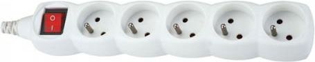 Listwa zasilająca OMEGA 3m 5 gniazd Listwa zasilająca 5 gniazdowa, wyposażona w system blokad mechanicznych chroniących dzieci przed możliwością porażenia prądem przy próbie kontaktu z przewodem fazowym, Listwa posiada niepalną obudowę z tworzywa sztucznego, oraz wysokiej jakości przewód sieciowy zgodny z obowiązującymi normami. Szczegóły produktu Listwa zasilająca typ E French z 5 gniazdkami z uziemieniem i wyłącznikiem Długość kabla 3.0m, średnica żyły 1.5mm2 Dostosowane jest do obciążenia prądem do 3600W Osłona bezpieczeństwa przed dziećmi wbudowana w każdym gnieździe Wysokiej jakości niepalna obudowa z tworzywa sztucznego Zalecana do komputerów, innych urządzeń biurowych i sprzętu gospodarstwa domowego Kolor: biały Producent: OMEGA