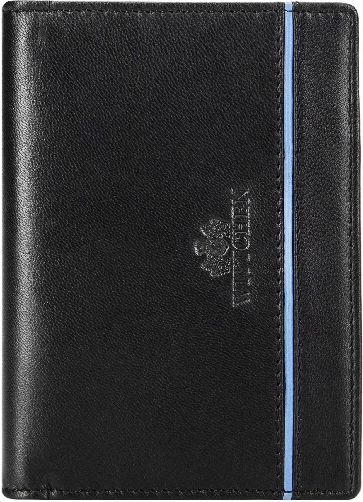 Skórzany męski portfel z kontrastową wstawką czarny Pułtusk