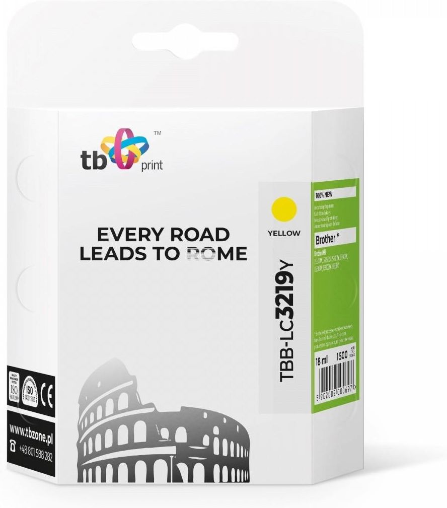 Tusz do Brother MFC-J5330DW żółty TBB-LC3219Y Kolor: Żółty (yellow) Pojemność: 18 ml Wydajność (5% pokrycie): 1500 str. A4 Chip: Tak Liczba w opakowaniu jednostkowym: 1 Kompatybilność: Brother MFC J5330DW Brother MFC J5335DW Brother MFC J5730DW Brother MFC J5930DW Brother MFC J6530DW Brother MFC J6930DW Brother MFC J6935DW Kod oryginału: LC3219Y Pasuje do: Brother TB Print TBB-LC3219Y 5902002000697