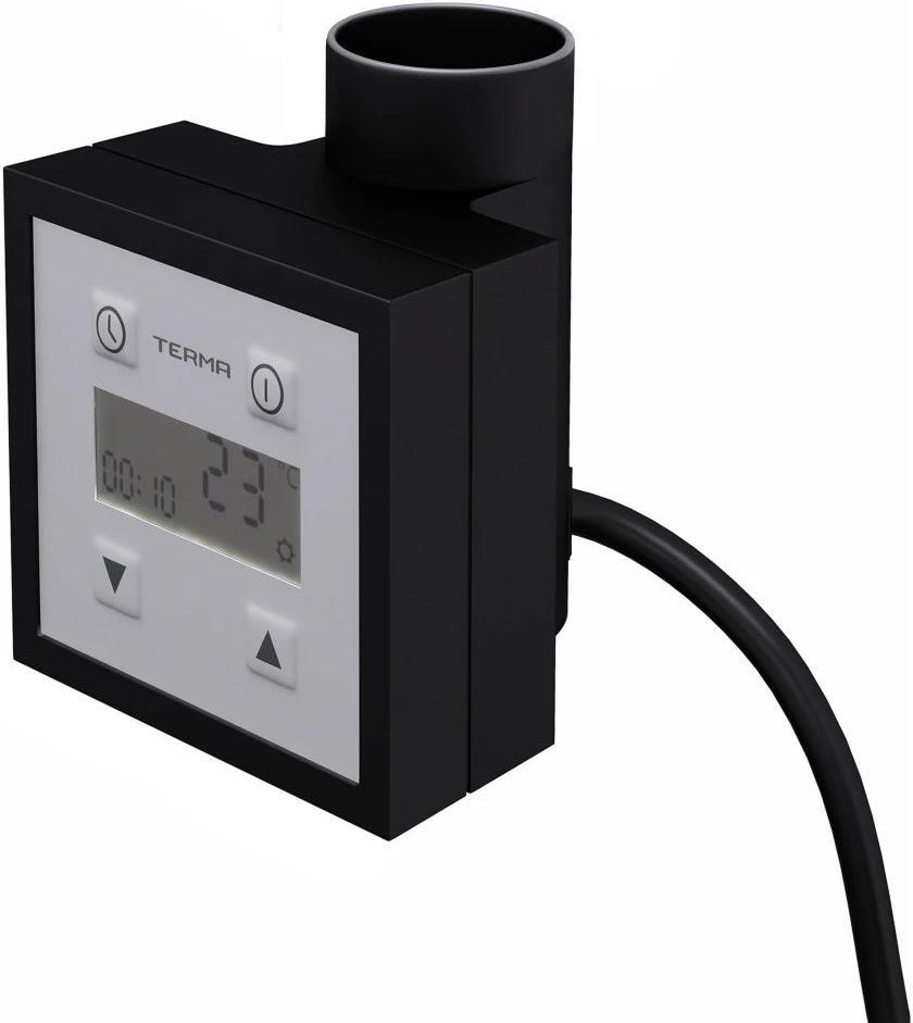 Grzałka elektryczna TERMA KTX3 400W, kabel spiralny z wtyczką, czarna WEKT304T905U OPIS PRODUKTU:KTX 3 to doskonale funkcjonalna grzałka wyposażona w timer umożliwiający zaprogramowanie stref czasu grzania w ciągu doby. Estetyką nawiązuje do najnowszych trendów wzorniczych, przemyślana konstrukcja czyni ją zaś wyjątkowo wygodną w obsłudze. KTX 3 posiada także wielostopniową regulację temperatury czynnika grzewczego oraz funkcję ANTIFREEZE, która zabezpiecza przed jego zamarznięciem..FUNKCJONALNOŚĆ:Grzałka posiada możliwość precyzyjnej regulacji temperatury grzejnika w zakresie od 30°C do 60°C z krokiem co 1°C. Urządzenie prezentuje aktualnie nastawiony poziom temperatury oraz sygnalizuje stan grzania i spoczynku. Interfejs grzałki umożliwia jej łatwe programowanie i obsługę. Grzałka zaprojektowana została w Systemie Terma-Split, umożliwiającym rozłączanie elementu grzejnego i sterownika..FUNKCJE GRZAŁKI:- Nowoczesny wygląd- Wyświetlacz LCD i klawiatura membranowa- Wielostopniowa regulacja temperatury grzejnika w zakresie 30-60°C ze skokiem co 1°C- Prezentacja aktualnego czasu (ZEGAR) i temperatury grzejnika- Do wyboru 4 kolory wykończenia – biały, silver, chrom, czarny- Funkcja ANTIFREEZE, zabezpieczenie przed spadkiem temperatury grzejnika poniżej 5-7°C- Podwójne zabezpieczeniem przed przegrzaniem- Symetryczna obudowa (montaż dowolnie po lewej lub prawej stronie)- Możliwość odłączenia elementu grzejnego dzięki wykorzystaniu złącza Terma-SPLIT- 24-godzinny TIMER umożliwiający zaprogramowanie do czterech przedziałów czasowych, w których grzałka utrzyma określoną temperaturę lub pozostanie wyłączonaSPECYFIKACJA TECHNICZNA: -zasilanie: 230V/50Hz-dostępne moce : 120, 200, 300, 400, 600, 800, 1000W, 1200W-klasa ochrony urządzenia : klasa I-przyłącze grzejnikowe: 1/2”-Stopień ochrony obudowy [IP] :IPx4: wersja MS; IPx5: wersja z kablem