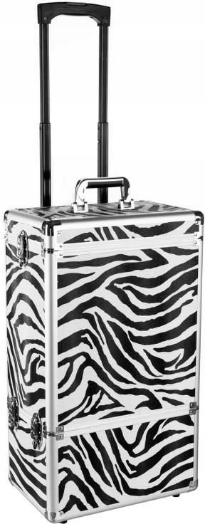 Walizka fryzjerska na kółkach kufer mobilny Ref. O03178/80 Walizka fryzjerska na kółkach kufer mobilny Profesjonalny, aluminiowy kufer fryzjerski na stelażu z kółkami i designerskim wzorem. Wewnątrz wykładany miękką gąbką, co sprawia, że wszystkie sprzęty fryzjerskie i kosmetyki są w nim bezpieczne. Prezentowana walizka fryzjerska składa się z czterech modułów, które można dowolnie składać i ustalać samemu wysokość i pojemność walizki. Walizka fryzjerska na kółkach kufer mobilny 4 moduły: ✅ komora dolna 19,5cm - z przymocowanymi kółkami, ✅ komora duża 38cm - z przymocowanym stelażem, ✅ dwie komory po 10cm - posiadające dodatkowo przegródki wewnątrz, które można dowolnie ustawiać. Każdy z poszczególnych modułów posiada gumowe nóżki. Dlatego każdy z osobna może być podstawą kufra. Walizka fryzjerska pokryta jest gumowym materiałem z motywem zebry. Dzięki temu bardzo łatwo ją utrzymać w czystości. Ponadto walizka stoi na gumowych nóżkach oraz posiada miękką rączkę. Kanty walizki są dodatkowo wzmacniane. Najczęściej wybierany kufer fryzjerski przez profesjonalistów. Wymiary walizka fryzjerska na kółkach kufer mobilny ✅ wysokość 81,5cm ✅ szerokość 24,5cm ✅ długość 37cm ✅ waga ok 8,7kg Walizka fryzjerska na kółkach kufer mobilny ✅ Doskonale sprawdzi się w przypadku salonów mobilnych ✅ Optymalna ilość miejsca wewnątrz walizki zmieści wszystkie niezbędne narzędzia ✅ Przyciągający nadruk walizki z pewnością wyróżni Cie z tłumu ✅ Niezwykle lekka i poręczna konstrukcja ✅ Wysoka jakość i precyzja wykonania