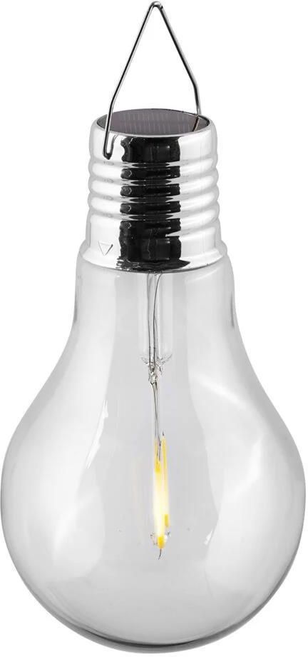 Lampa solarna z możliwością zawieszenia.Lampa solarna marki Anslut to nie tylko ładne i nastrojowe oświetlenie do ogrodu, ale też sposób na oszczędzanie energii elektrycznej! Lampa jest wyposażona w ogniwo słoneczne, włókna żarowe, przezroczysty klosz i praktyczny haczyk do zawieszenia.Haczyk do zawieszeniaLampę możesz zawiesić na haczyku lub postawić – tak samo ładnie prezentuje się w ogrodzie lub na balustradzie balkonowej, jak i na stole ogrodowym. Produkt zasilany akumulatorkami (w zestawie). Specyfikacja techniczna Gwarancja (w miesiącach): 12 m.Moc: 0,8 WNapięcie: 1,2 VPojemność akumulatora: 150 mAhStrumień świetlny: 2 lmKlasa szczelności: IP44Typ akumulatora: NiMHWymiary: Wys. 17,5 x Ø10 cmOdcień: CiepłobiałyTemperatura barwowa: 2700 K