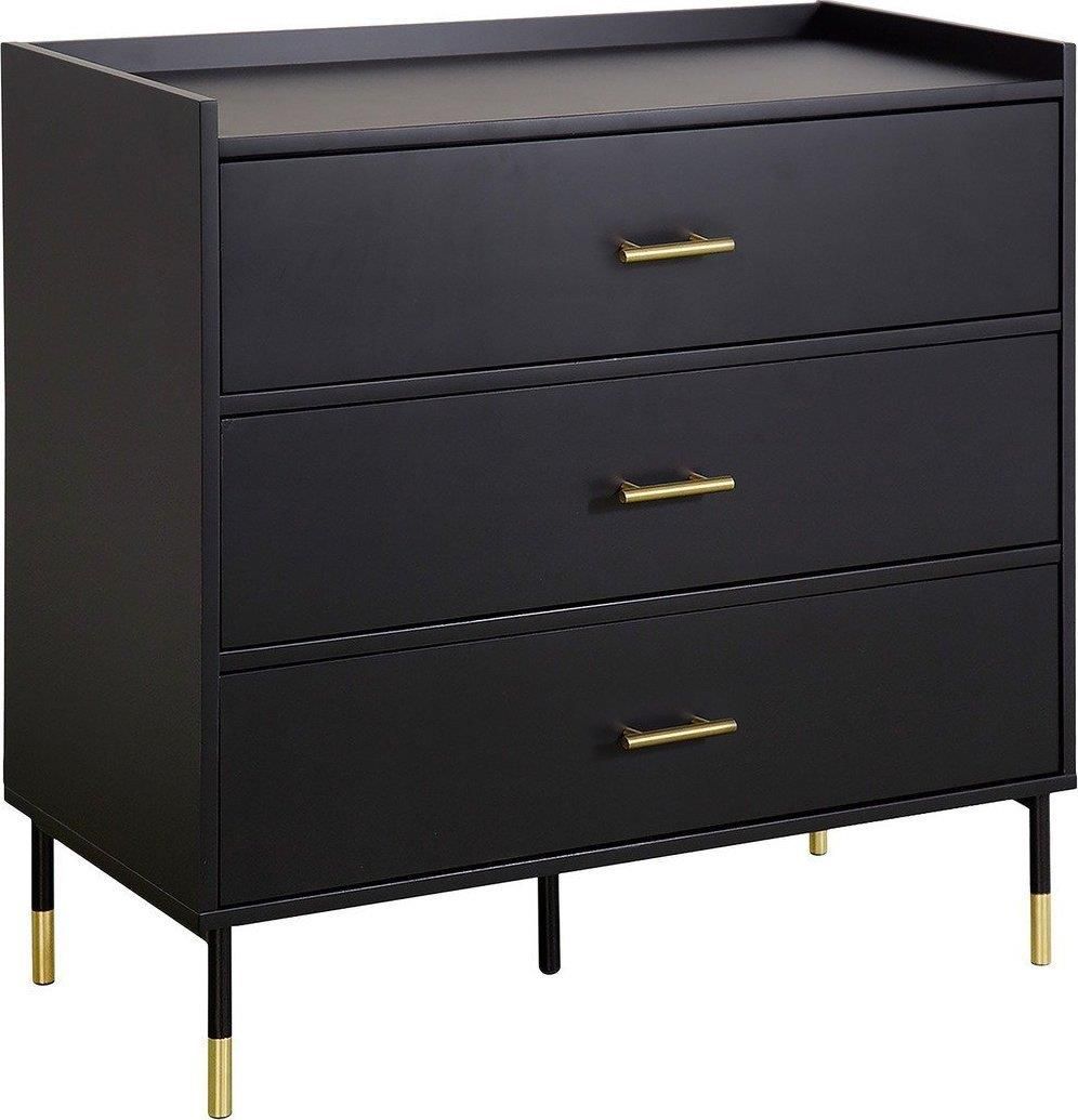 Komoda Tedy marki Atmosphera to nowoczesna komoda glamour o szerokości 80 cm, stworzona z myślą o stylowych wnętrzach salonu lub sypialni. Połączenie matowej czerni z eleganckimi złotymi detalami oraz metalowymi uchwytami podkreśla wyrafinowany charakter mebla. Trzy pojemne szuflady oraz smukłe, …