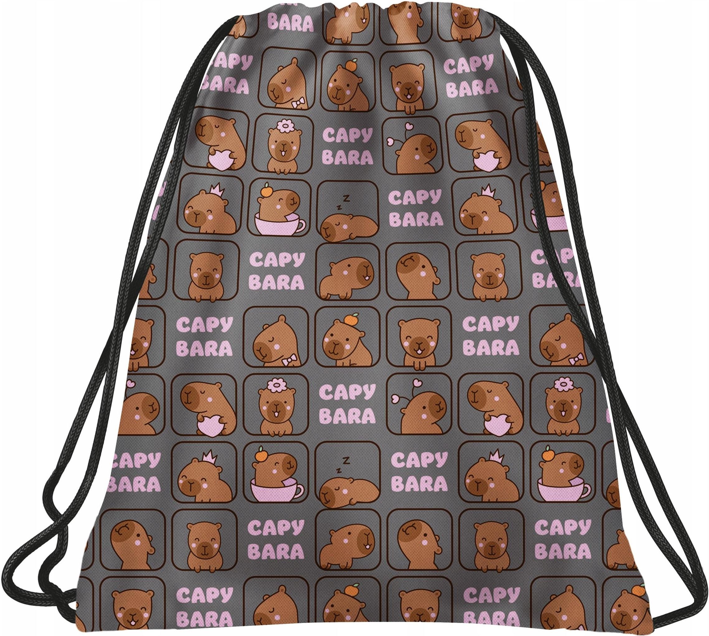 BACKUP WOREK SZKOLNY NA BUTY OBUWIE WF PLECAK DO SZKOŁY KAPIBARA PRODUCENT: DERFORM OPIS PRODUKTU "Sympatyczne kapibary w różnych pozach, jedna z kokardką, drugą z owocem na głowie, a wszystko to w miękkich odcieniach brązu, szarości i różu. Skradnie serca wszystkim miłośnikom tych futrzastych zwierząt. Wiedzieliście, że kapibary są mistrzami relaksu? spędzają większość dnia na wylegiwaniu się w wodzie jak prawdziwi królowie spa! Nazwa kolekcji: Kapibara. Worek BackUP: - Sprawdzi się idealnie na WF - posiada długie i solidne sznurki - wykonany jest z wodoodpornej tkaniny, którą można łatwo wyczyścić - może być używany jak plecak - rozmiar: 41x35 cm - waga: 33 g"