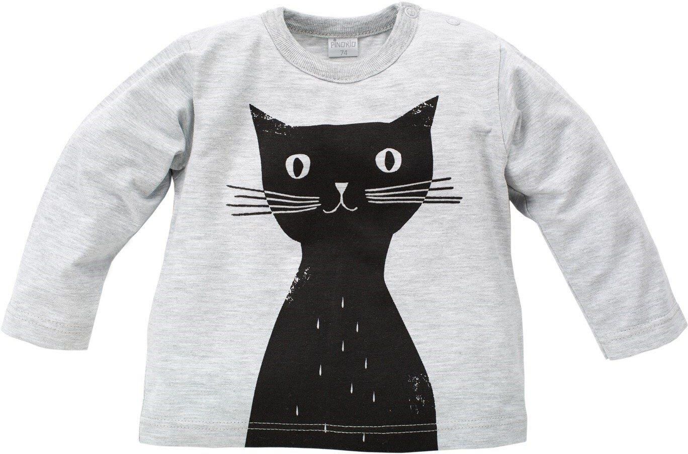 Mięciutka bluzeczka z długim rękawkiem, uszyta z bawełny 95% w kolorze jasno szarego melanżu. Zapinana na ramionku na dwie bezniklowe napki. Na środku bluzki nadrukowany duży, czarny kotek, z tyłu bluzki nadrukowany ogonek kotka. Nadruki wykonane są bezpieczną techniką farb wodnych, która nie uczula wrażliwej skóry dziecka. Rozmiar: 80 cm Obwód klatki piersiowej: 48 cm Skład: 95% bawełna 5% poliester Pinokio to polska marka odzieży dla dzieci i niemowląt, która za najwyższą jakość została wyróżniona certyfikatem "Bezpieczny dla dziecka". Ponad dwudziestoletnie doświadczenie, bawełna najwyższej jakości i anatomiczny krój gwarantują swobodę małym użytkownikom ciesząc ich kolorami dzianin i wesołymi nadrukami. Kolekcje tworzy zespół kreatywnych osób, dbając o wygodę i ładny wygląd dzieci.