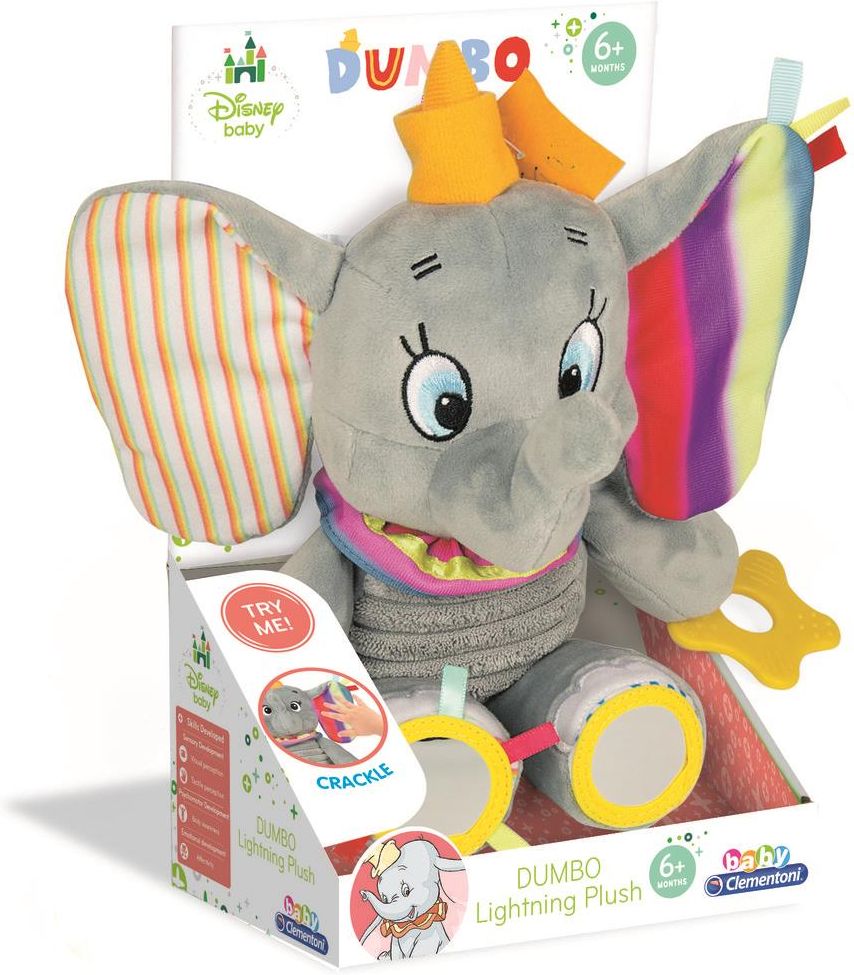 Uroczy pluszak Dumbo z podstawowymi aktywnościami specjalnie zaprojektowanymi dla najmłodszych dzieci, o żywych kolorach, które stymulują zainteresowanie i wzrok. Miękkie, szorstkie uszy, grzechotka, brzuch i elastyczne nogi pomagają dziecku rozwinąć umiejętności sensoryczne. Nóżki są elastyczne, a …