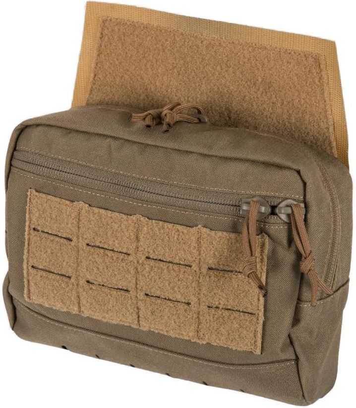 Sporym problemem, z jakim boryka się każdy noszący plate carrier w połączniu z pasem, jest czasami brak możliwości zamontowania czegokolwiek na froncie tego drugiego. Dlatego przy projektowaniu SPITFIRE® MK II pomyśleliśmy także o kieszeni, mocowanej bezpośrednio na rzepie plate carriera i zwisającej tuż pod płytą. Kieszeń ta pomieści wszystko, czego możesz potrzebować – niewielką kurtkę, telefon, zapasowe zatyczki do uszu, magazynki pistoletowe, a nawet wkłady od jednej z naszych apteczek. Z przodu umieszczony jest rzep na naszywki, jak również niewielki panel systemu modułowego kompatybilnego z MOLLE/PALS. Sama kieszeń wykonana została przede wszystkim z Cordury® 500D, dzięki czemu jest nie tylko wytrzymała, ale również lekka. Kieszeń ta będzie doskonałym dodatkiem nie tylko do twojej „cięższej” konfiguracji, ale także do mniejszych zestawów pod CQB, gdzie większość twojego wyposażenia powinna znajdować się z przodu. Cechy: System modułowy z przodu Kompatybilny zarówno ze SPITFIRE MK II jak i SPITFIRE oraz HELLCAT Plate Carrier Wykonany z laminatu oraz Cordury® 500D Doczepiany bezpośrednio do rzepa na plate carrierze Rzep z przodu