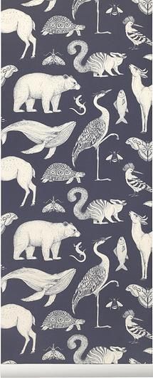 Ferm Living Tapeta Katie Scott Animals Granatowa Puszczykowo