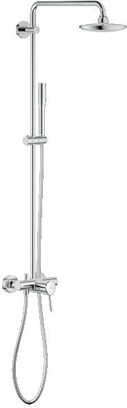 Opis produktu system natryskowy natynkowa jednouchwytowa bateria prysznicowa z przełącznikiem pozwala na przełączanie pomiędzy prysznic górny Euphoria Cosmopolitan 180 mm (27 492 000) z przegubem kulowym o kącie obrotu ± 20° prysznic ręczny Euphoria Cosmopolitan (27 367 000) z regulacją za pomocą przesuwnego uchwytu prysznicowego (12 140 000) Cechy produktu poziome obrotowe ramię 450 mm wąż prysznicowy Silverflex 1250 mm(28 362 000) min. przepływ 7 l/min. przystosowany do podgrzewaczy przepływowych o mocy min. 18 kW GROHE EcoJoy® technologia dla zmniejszenia zużycia wody. GROHE SilkMove® GROHE DreamSpray® powłoka chromowa z GROHE StarLight® Środek czyszczący do armatury Grohclean Grohe 45939 001 Do kompletowania z:
