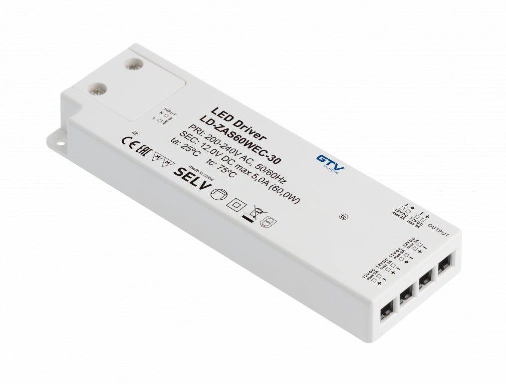 Gtv Zasilacz Led 12V 60W 5A Ip20 Wym.190X62X21Mm Z Miniamp I Przewodem Slim Easy Click (LDZAS60WEC30) Puszczykowo