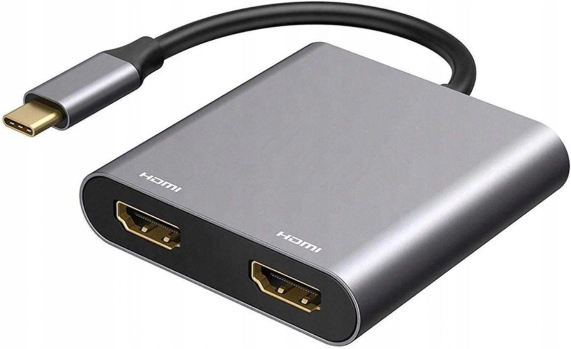 HUB USB-C ADAPTER PRZEJŚCIÓWKA 2x HDMI 4k ✔️Adapter HUB USB-C umożliwia przesyłanie sygnału audio i video z laptopa na ekran monitora, telewizora lub projektora z wejściem HDMI w rozdzielczości do 4K ✔️Gwarantuje doskonałą jakość obrazu dzięki wsparciu rozdzielczości do 4K Ultra HD UHD 4k@30Hz (3840*2160) poprzez port HDMI ✔️Przejściówka zgodna z Thunderbolt 3 ✔️Niewielki rozmiar i estetyczny wygląd zapewniają wysoką kulturę pracy Specyfikacja: ⭐Aluminiowa obudowa ⭐Plug and Play ⭐Wejście: USB 3.1 typ C ⭐Długość kabla: 8cm ⭐2x HDMI 4k 3840*2160@60Hz ⭐Mirror Mode - klonowanie ekranu