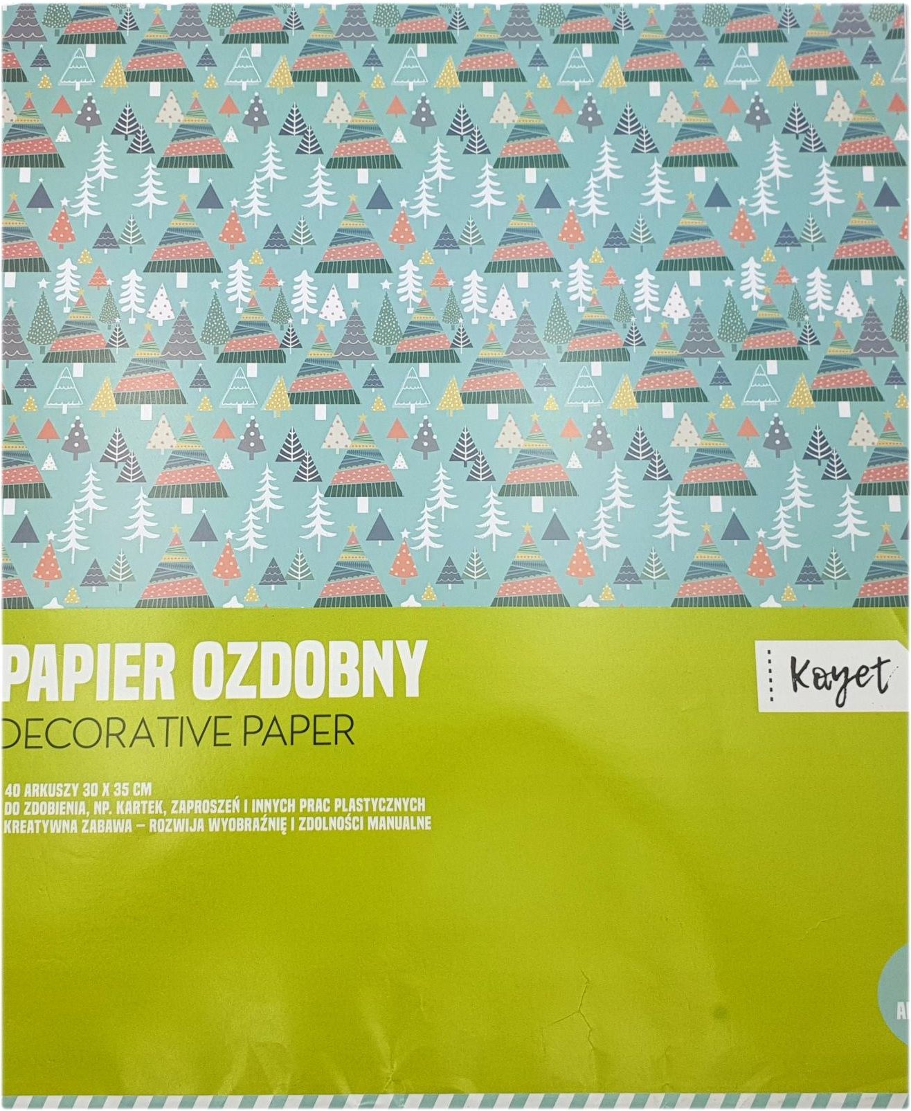PAPIER OZDOBNY 40 ARKUSZY 30 x 35 CM W zestawie znajduje się 40 arkuszy papieru ozdobnego 20 wzorów - każdy wzór jest w 2 arkuszach Wymiary papieru: 30cm x 35cm Do zdobienia np. kartek, zaproszeń i innych prać plastycznych Kreatywna zabawa - rozwija wyobraźnię i zdolności manualne! Produkt nowy, outletowy, leżak magazynowy. Produkt może posiadać uszkodzoną folię ochronną lub znajdować się w opakowaniu zastępczym.