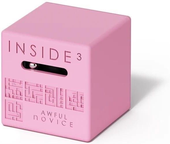 Inside 3 Awful noVICE IUVI Games INSIDE 3 to oryginalna łamigłówka, w której musimy pokonać przygotowany w kostce labirynt. Gdzie jest haczyk? W momencie wpuszczenia kuleczki do środka kostki, nie będziemy jej widzieć! Na szczęście dla ułatwienia wygrawerowano mapki każdego z poziomów kostki, a jeśli kompletnie się pogubicie i będziecie chcieli zacząć od nowa to w prosty sposób można kostkę rozłożyć, wyjąć kuleczkę i po ponownym złożeniu umieścić kulkę w miejscu startowym.Wiek graczy: 8+