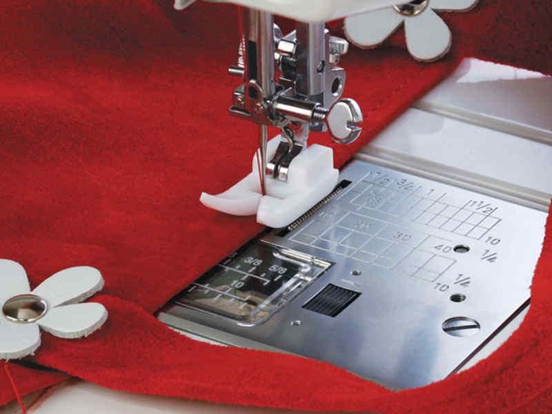Stopka teflonowa - JANOME 200141000 Ten model idealnie pasuje do szycia winylu, lateksu, skóry, tkanin banerowych, skajów i innych, trudnych do obszycia materiałów syntetycznych. Dzięki fakturalnej powierzchni stopki uzyskujemy lepszy poślizg w trakcie szycia, a co więcej materiał nie przyklei się …