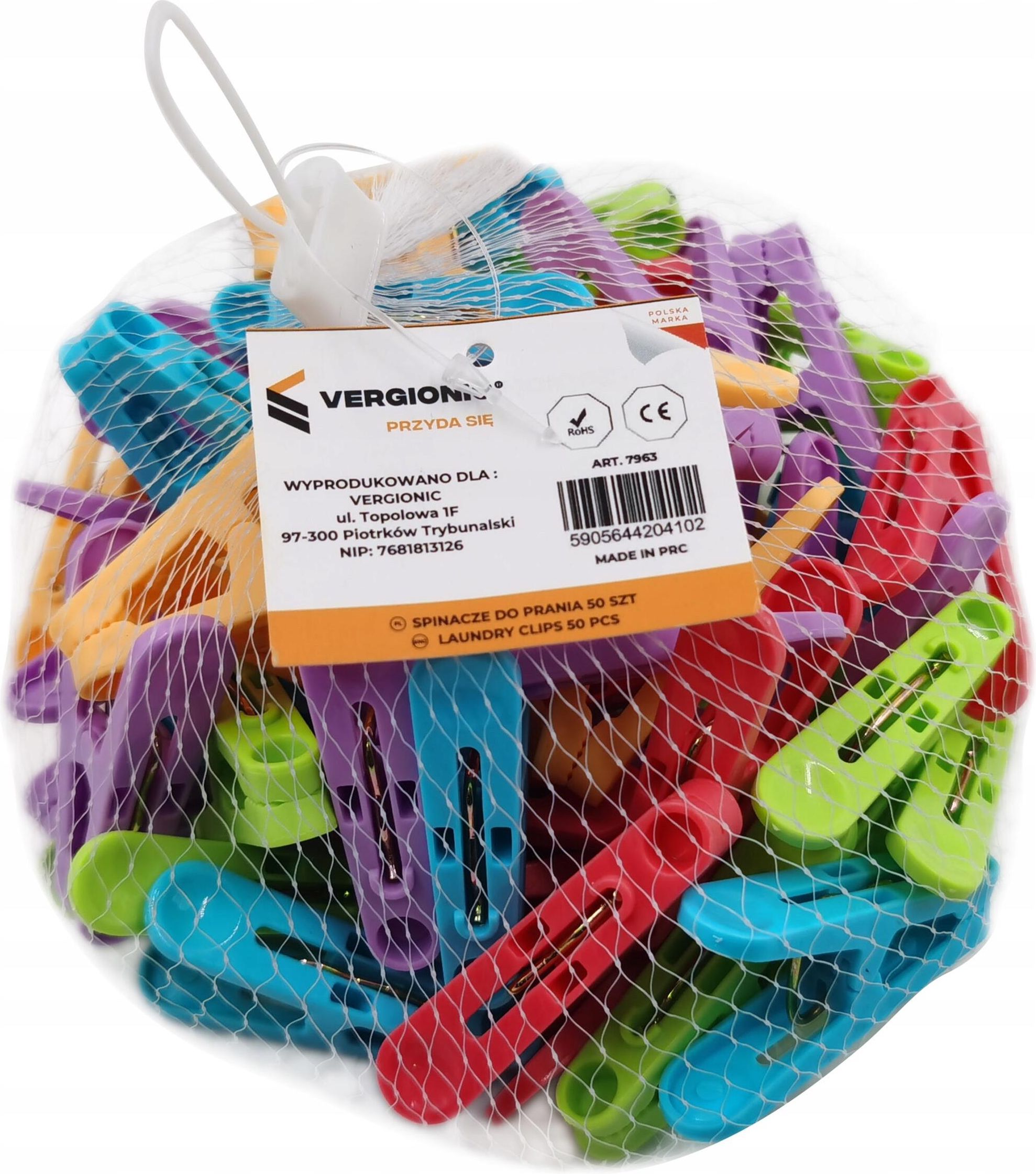 Klamerki do prania spinacze do bielizny 50 sztuk kolorowe Towar zapakowane fabrycznie przez producenta. W skład zestawu wchodzi Klamerki do prania spinacze do bielizny 50 sztuk kolorowe Specyfikacja Długość: 5 cm W opakowaniu: 50 szt. Materiał: tworzywo sztuczne Kolor: mix Spinacze do prania są niezbędnym elementem każdego gospodarstwa domowego, a ten zestaw to doskonały wybór dla osób, które szukają funkcjonalnych i estetycznych narzędzi do suszenia swoich ubrań. Kolorowe spinacze dodają radości do codziennych obowiązków związanych z praniem, a jednocześnie są wyjątkowo trwałe i wytrzymałe na uszkodzenia. Idealnie sprawdzą się zarówno w przypadku suszenia grubych koców, jak i delikatnych tkanin, takich jak jedwab czy koronki. Ich klasyczny kształt oraz ergonomiczny uchwyt gwarantują łatwe i wygodne użytkowanie, a po zakończeniu suszenia można je łatwo schować do szuflady lub kosza na pranie. Zestaw zawiera aż 50 spinaczy, dzięki czemu można suszyć wiele rzeczy jednocześnie, bez obaw o ich spadanie lub przesuwania się na linkach. Ich kolor sprawia, że łatwo je zlokalizować na linkach lub w koszu na pranie. Spinacze są wykonane z wysokiej jakości tworzywa sztucznego, które zapewnia długotrwałość i odporność na warunki atmosferyczne. Klipsy doskonale sprawdzą się nawet pod wpływem silnego wiatru dlatego przeznaczone są do użytku wewnętrznego i zewnętrznego. Dzięki nim można mieć pewność, że powieszone pranie nie spadnie ze sznurka czy suszarki. Spinacze do prania charakteryzują się Wykonaniem z wysokiej jakości tworzywa sztucznego, nie łamią się, nie wyginają Odpornością na warunki atmosferyczne przez co będą służyć w gospodarstwie domowym przez długie lata Mocnym zaciskiem, dzięki czemu spinacze utrzymają pranie nawet pod wpływem silnego wiatru