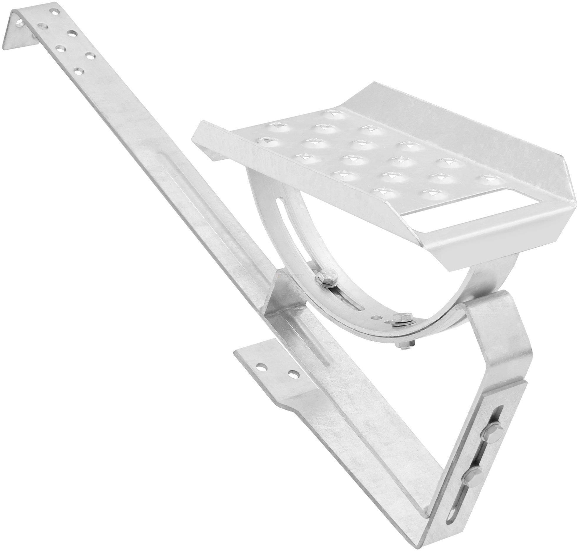 Kompletny stopień kominiarski - zestaw zawiera wszelkie elementy które są potrzebne do montażu: stopień, śruby i wspornik do dachówek betonowych oraz ceramicznych.