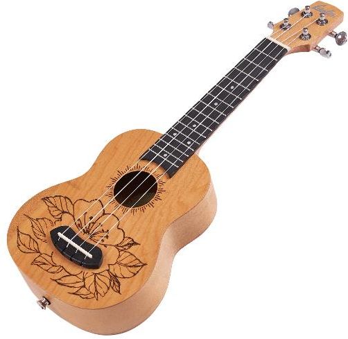Ukulele sopranowe (21") z serii FUN graphic z laserowym motywem FLOWERS. Płyta wierzchnia: Catalpa. Boki i tył: Catalpa. Gryf: okume. Podstrunnica i mostek technical wood. Profesjonalne olejowe maszynki (die cast). Komplet z firmowym pokrowcem.
