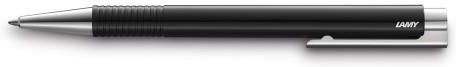 Długopis z plastikowym korpusem w czarnym, błyszczącym kolorze. Zintegrowany z przyciskiem stalowy klip. Czarny wkład Lamy M63 w zestawie.