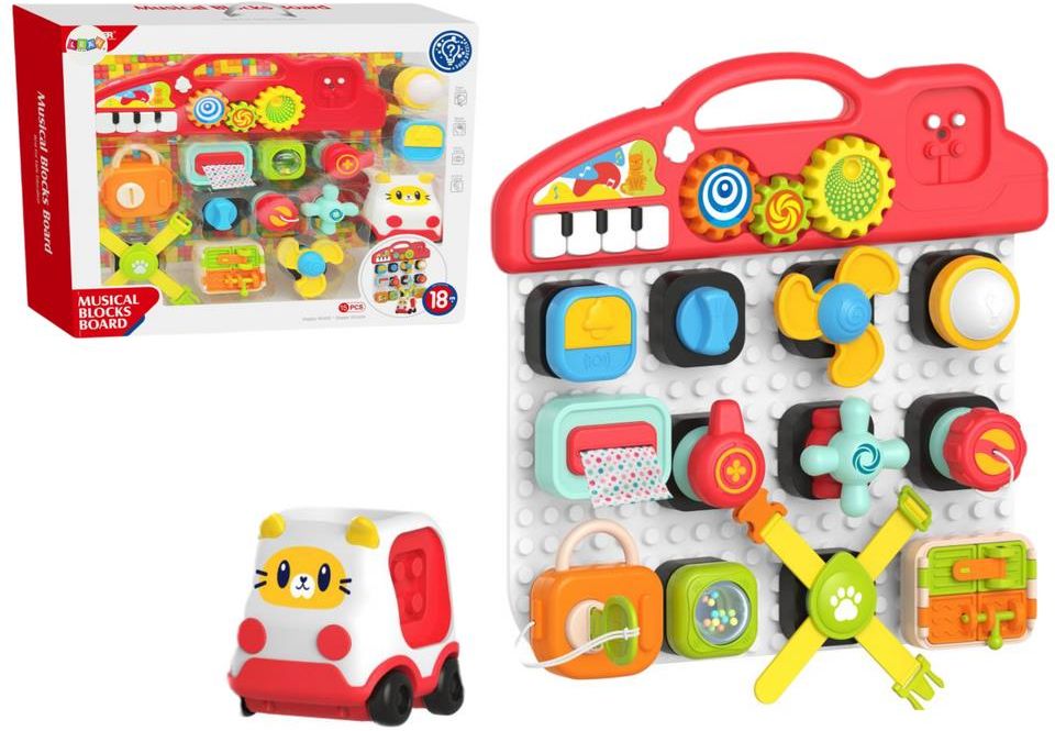 Lean Toys Tablica Sensoryczna Dla Dzieci Panel Edukacyjny Interaktywny Pianinko 15 Ele. Puszczykowo