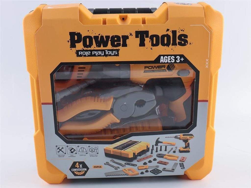ZESTAW NARZĘDZI W WALIZCE Z WIERTARKĄ ŚWIATŁO + DŹWIĘK Narzędzia wykonane są z solidnego plastiku, co sprawia, że są łatwe w obsłudze i nie ranią dzieci podczas zabawy. Zestaw majsterkowicza dla dzieci jest świetnym sposobem na rozwijanie zdolności manualnych oraz kreatywności u najmłodszych. Dzieci mogą tworzyć własne projekty, naprawiać drobne usterki w domu oraz rozwijać umiejętności techniczne podczas zabawy. Zestaw jest również doskonałym pomysłem na prezent dla dziecka, które interesuje się majsterkowaniem i budowaniem. Wiertarka zasilana trzema bateriami AAA (brak w zestawie) po wciśnięciu przycisku wydaje dźwięki oraz świeci się, ma również opcję odłączania baterii. Zestaw składa się z 28 elementów. 3+