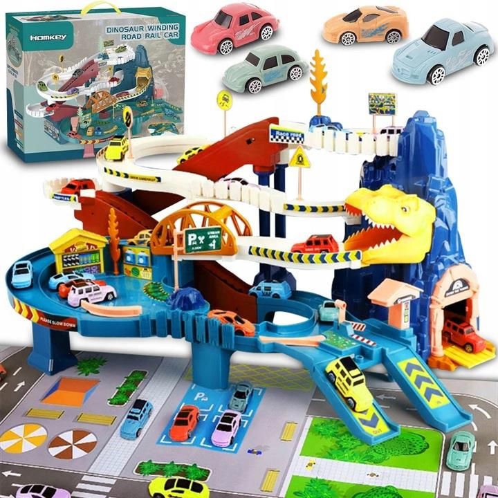 Malplay Zestaw Kolejka Tor Wyścigowy Parking Dinozaur 4Auta Elektryczna Winda Tunel Puszczykowo