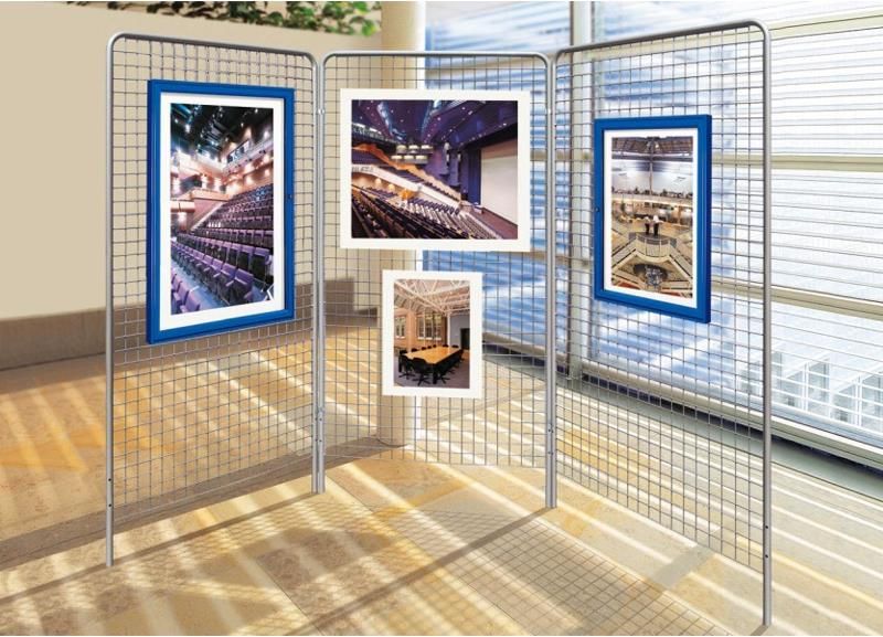 Metalowe konstrukcje ekspozycyjne to idealne rozwiązanie do ekspozycji zdjęć, obrazów w ramach, a nawet gablot wiszących. Metalowa krata ekspozycyjna to elegancja i nowoczesność, sprawdzi się w każdym wnętrzu, w szkole, muzeum, ośrodkach kultury, również w plenerze. – zestaw zawiera 3 kraty – każda krata ruchoma o wymiarach: wysokość 200 cm x szerokość 100 cm – rama z rury stalowej o średnicy 25mm – wykończenie: malowanie proszkowo w kolorze szarym – siatka z otworami 50×50 mm – w prezencie 6 zacisków do połączenia 3 krat i 12 haczyków służących do zawieszenia gablot – wyposażenie opcjonalne stanowią: dodatkowe łączniki oraz podwójny stojaczek w przypadku ustawienia krat oddzielnie- opcje do dokupienia w naszym sklepie