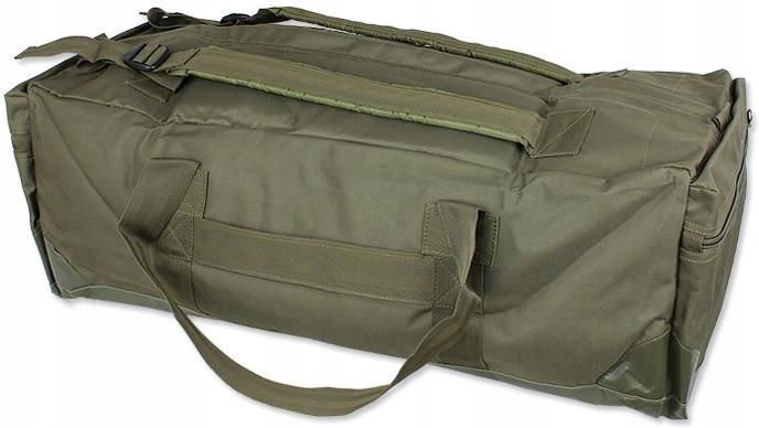 Torba transportowa wojskowa plecak Mil-Tec Combat Duffle Bag 75 L olive [13845001] Parametry Model: Torba plecak BW Producent: Mil-Tec, Niemcy Materiał: Nylon 600D, Polichlorek winylu (PVC) Jedna komora główna Kieszenie zewnętrzne i wewnętrzne Dwukierunkowy zamek główny, kryty listwą Duże uchwyty zamków, sznurkowe pętle Możliwość założenia kłódki lub plomby na zamek Wodoodporna warstwa PVC – wnętrze, spód, narożniki Szelki z miękkim wypełnieniem i regulacją długości Piankowe, miękkie wypełnienie części plecowej Przezroczyste okno do personalizacji Wzmocnienia z solidnymi przeszyciami Szerokie uchwyty do przenoszenia Uchwyt walizkowy Kolor: Olive Kieszenie 1 komora główna 2 zewnętrzne kieszenie na końcach (jedna z przegrodą), zamykane na suwak 1 kieszeń boczna zamykana na suwak, z oknem personalizacyjnym 2 wewnętrzne kieszenie z klapami zapinanymi na rzep Zalety Wysoka jakość Wytrzymałe materiały Specyfikacja militarna Model 2 w 1 – torba i plecak Wodoodporna Dno z narożnikami odporne na wodę i brud Bardzo pojemna i pakowna Praktyczne kieszenie Szelki z łatwą regulacją długości Szelki i plecy z miękkim wypełnieniem Duże zamki z wygodnymi uchwytami Solidne szerokie uchwyty do przenoszenia Uchwyt walizkowy Duża torba wojskowa na wzór niemieckiej armii (Bundeswehr), wyprodukowana z wysokiej jakości materiałów przez firmę Mil-Tec według militarnej specyfikacji. Model 2 w 1 – łączy w sobie cechy klasycznej torby oraz plecaka. Doskonała zarówno do zastosowań militarnych, jak i cywilnych. Torbę wykonano jest z wytrzymałego nylonu 600D charakteryzującego się dużą odpornością na przedarcia i przetarcia. Wnętrze pokryte jest wodoodporną warstwą PVC, co zabezpiecza zawartość przed deszczem. Warstwą PVC obszyty jest również spód wraz z narożnikami, co wzmacnia newralgiczne miejsca, sprawia, że torbę można stawiać na mokrym podłożu bez obawy o zamoczenie bagażu oraz ułatwia czyszczenie. Model posiada jedną, bardzo dużą komorę główną, wewnątrz której na końcach znajdują się kieszenie zamykane patkami na rzep. Komora zamykana jest dwustronnym zamkiem, krytym listwą. Torbę wyposażono w 3 kieszenie zewnętrzne zamykane zamkami: 2 na końcach, z czego jedna ma wszytą przegrodę i 1 na boku. Kieszeń boczna posiada naszytą ramkę z oknem, w której można umieścić dane personalizacyjne. Suwaki wszystkich zamków posiadają duże, wygodne uchwyty zaopatrzone w sznurkowe pętle ułatwiające korzystanie z zamków nawet w grubych rękawicach. Specjalne pętle umożliwiają założenie kłódki lub plomby na zamki. Torba posiada po bokach dwa uchwyty wykonane z mocnych szerokich taśm. Dzięki szelkom torbę można nosić jak plecak. Górne klapy, pełniące funkcję części plecowej, wypełnione są miękką pianką, co zwiększa wygodę podczas noszenia na plecach oraz dodatkowo chroni bagaż. Szelki są usztywnione i wypełnione miękką pianką. Posiadają łatwą regulację długości. Na jednym z boków umieszczono szeroki uchwyt walizkowy. Mocowania szelek i uchwytów posiadają dodatkowe wzmocnienia z solidnymi przeszyciami. Wysokiej jakości, duża, solidna, pojemna i pakowna, torba i plecak w jednym, doskonała na wszelkie wojskowe misje, survivalowe wyprawy, turystyczne podróże i rodzinne wczasy. Wymiary Wysokość: 26 cm Długość: 77 cm Szerokość: 36 cm Pojemność: ok. 75 l Waga: 1,5 kg Uwaga, podane wymiary są wymiarami produktu.