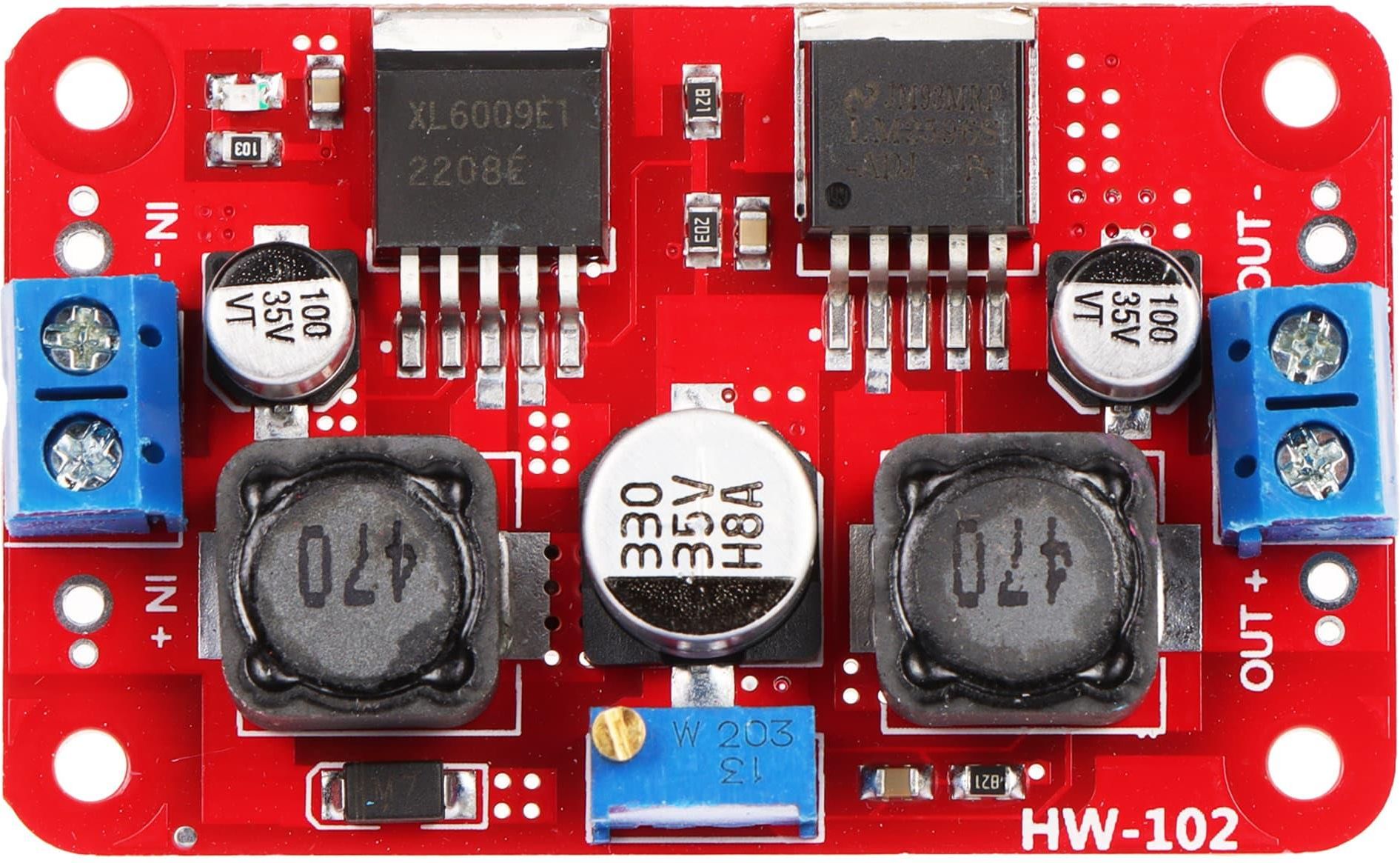 Moduł przetwornicy obniżającej i podwyższającej napięcie. Urządzenie PZDU-2826 konwertuje napięcie wejściowe z zakresu 3.5 ... 28V DC do wartości 1.25 ... 26V DC. SPECYFIKACJA Typ: Obniżanie i podwyższanie napięcia, DC/DC Liczba wejść: 1 Liczba wyjść: 1 Napięcie zasilania: 3.5 ... 28 VDC Napięcie wyjściowe: 1.25 ... 26 VDC Regulacja napięcia wyjściowego: Regulacja potencjometrem precyzyjnym Prąd wyjściowy: 3 A (max) Waga: 0.02 kg Wymiary: 60 x 37 x 14 mm Gwarancja: 2 lata Pełna nazwa produktu MODUŁ PRZETWORNICY PZDU-2826 DC/DC