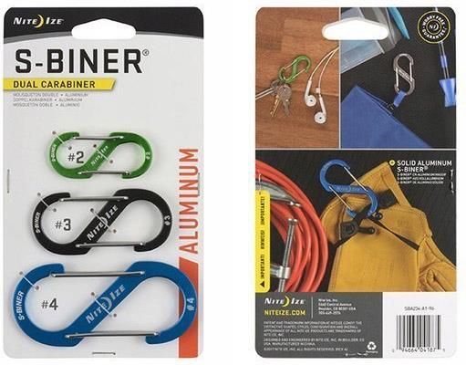 Nite Ize - Karabinek S-Biner Aluminum Dual Carabiner Combo - 3 szt. Nite Ize Zestaw aluminiowych karabinków S-Biner amerykańskiej firmy Nite Ize. W jego skład wchodzą trzy wykonane z odpornego aluminium karabińczyki o różnym rozmiarze - od #2 do #4. Pozwalają one skutecznie przypiąć i zabezpieczyć szeroką gamę wyposażenia, od najmniejszego (klucze, breloki) po większy: buty, rękawiczki, termosy, kubki. Wielkości od 2 do 4 nadają się do mocowania akcesoriów do plecaka, kamizelki, przydadzą się także w samochodzie, motocyklu, garażu czy piwnicy. Dane techniczne Szybkie i łatwe, obustronne zapięcie. Opatentowana konstrukcja Materiał: Anodyzowane aluminium Waga #2: 4 g Waga #3: 9 g Waga #4: 17 g Wielkość: #2 - 5,1 x 2,5 x 0,8 cm Wielkość: #3 - 31mm x 69mm x 8mm Wielkość: #4 - 41mm x 90mm x 10mm
