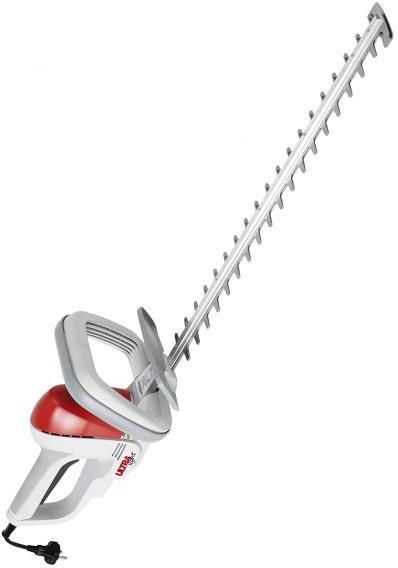 Elektryczne nożyce do żywopłotu IKRA FHS 1555 (550 Wat) z przeciwbieżnymi, wycinanymi laserem i szlifowanymi ostrzami "Made in Germany" wyposażonymi w osłonę antyudarową o długości cięcia 55 cm i odstępie miedzy zębami 24 mm. Parametry nożyc: Cechy ostrzy i cięcia: przeciwbieżne, wycinane laserem i szlifowane ostrza z szyną aluminiową ostrza "Made in Germany" osłona antyudarowa długość cięcia: 55 cm odstęp między zębami: 24 mm Uchwyt: ergonomiczny uchwyt pałąkowy uchwyt tylny z warstwą miękkiego tworzywa Bezpieczeństwo: elektryczny szybki hamulec ostrzy dwuręczny uchwyt bezpieczeństwa Pozostałe: duża trwałość dzięki metalowej przekładni odciążnik przewodu sztywna osłona ostrzy opatentowana przekładnia ULTRALIGHT Zalety elektrycznych nożyc do żywopłotu wytrzymałość: duża wytrzymałość dzięki stałemu zasilaniu z sieci elektrycznej brak przerw w pracy: brak przerw w pracy, ponieważ energia jest ciągle dostarczana do urządzenia z sieci elektrycznej niewielka konserwacja: brak konieczności wymiany świec, przygotowywania mieszanki i napełniania zbiornika jak to ma miejsce w przypadku nożyc spalinowych niska waga urządzenia: dzięki zewnętrznemu zasilaniu z sieci elektrycznej waga urządzenia jest niższa niż nożyc spalinowych brak czasu ładowania akumulatora: brak konieczności wymiany lub ładowania akumulatora dzięki energii dostarczanej z sieci elektrycznej brak spalin: brak uciążliwych i szkodliwych dla środowiska i zdrowia spalin jak w przypadku nożyc spalinowych Potrzebujesz poręcznych elektrycznych nożyc do żywopłotu wygodnymi w obsłudze ostrzami zdolnymi ucinać także grubsze gałęzie średnich i dużych żywopłotów? Nożyce Ikra FHS 1555 z silnikiem o mocy 550 W i długością cięcia 55 cm są bardzo dobrym wyborem dla twojego ogrodu. Dzięki tym nożycom pielęgnacja żywopłotu przebiegnie sprawnie i bez niespodzianek. Są to najlżejsze nożyce w swojej klasie. Dzięki przeciwbieżnym ostrzom z hartowanej stali nożycami można przycinać nawet grube gałęzie. Odstęp między zębami ostrzy wynosi aż 24 mm, co przekłada się na maksymalną grubość ścinanych gałęzi. Nożyce są wyprodukowane w Niemczech i dzięki jakości Made in Germany uzyskane są wysokie parametry cięcia. Elektrycznymi nożycami do żywopłotu można sprawnie pracować w ciągły sposób ponieważ energia jest w ciągły sposób dostarczana z gniazdka elektrycznego. Dzięki zewnętrznemu źródłu energii nożyce elektryczne są wyraźnie lżejsze od nożyc spalinowych. Energia dostarczana z gniazdka oznacza także, że nie musisz zwracać uwagi na czas ładowania akumulatora. Nie powstaną też przerwy w pracy spowodowane napełnianiem zbiornika i przygotowywaniem mieszanki. Elektryczne nożyce do żywopłotu FHS 1545 posiadają metalową przekładnię co zapewnia niezawodność i trwałość urządzenia. W przypadku żywopłotów rosnących przy murze nie musisz się martwić, że uderzenie końcówką ostrzy w mur uszkodzi nożyce, ponieważ zostały one wyposażone w osłonę ostrzy zamontowana na ich końcówce. Dzięki temu dotkniecie muru końcówką ostrzy ich nie uszkodzi oraz zapobiega to odbiciu nożyc przez poruszające się ostrza. Osłona końcówki ostrzy pełni 3 ważne funkcje: chroni operatora przed odbiciem nożyc, chroni ostrza przed zniszczeniem oraz chroni mur przed uszkodzeniem. Aby uruchomić nożyce należy aktywować 2 włączniki: pierwszy znajduje się na przednim uchwycie kabłąkowym a drugi na uchwycie tylnym. Uchwyt kabłąkowy należy ścisnąć i następnie włączyć główny włącznik znajdujący się na uchwycie tylnym. Dzięki temu w momencie uruchomienia ostrzy obie ręce znajdują się z dala od ostrzy i nie ma niebezpieczeństwa przypadkowego uruchomienia urządzenia. Tylny uchwyt jest pokryty warstwą miękkiego tworzywa w celu uzyskania komfortu pracy i pewnego uchwytu. Zmniejsza to też możliwość powstawania pęcherzy i obtarć na dłoniach operatora. W przypadku zwolnienia któregokolwiek włącznika ostrza natychmiast się zatrzymują dzięki hamulcowi elektrycznemu. Zatrzymani ostrzy następuje w przeciągu 0,5 sekundy. Odciążnik przewodu w nożycach elektrycznych służy temu, aby zapewnić ciągły dopływ prądu do urządzenia poprzez pewne połączenie wtyczki urządzenia z gniazdkiem przedłużacza. Odciążnik zapobiega przypadkowemu rozłączeniu się wtyczki i gniazdka przedłużacza. Z przedłużacza należy uformować pętlę i przesunąć ją przez otwór w odciążniku i następnie zaczepić ją o wystający element. Po przycięciu żywopłotu nożyce należy wyczyścić. W szczególności należy usunąć z ostrzy resztki roślin i ich soków i następnie nasmarować je olejem i nałożyć na nie pokrowiec. Pokrowiec chroni ostrza podczas transport oraz zapobiega ich zanieczyszczeniu przez kurz I inne nieczystości w miejscu składowania. Nożyce należy składować w miejscu suchym w temperaturach dodatnich poza zasięgiem dzieci.