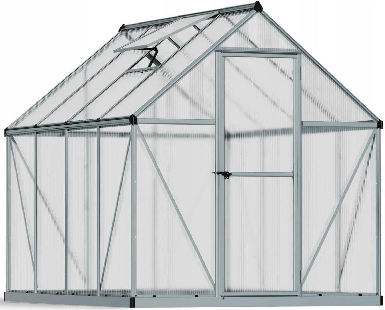 W STANDARDZIE JEST ZINTEGROWANA PODSTAWA FUNDAMENTOWA !! UWAGA! ZAMONTUJ SAM! MONTAŻ JEST NA TYLE PROSTY, ŻE NIE MUSISZ WZYWAĆ SPECJALISTY! Wymiary szklarni (dł x szer x wys) (cm): 246 x 185 x 208 Powierzchnia szklarni (m2): 4,63 Wysokość ściany (cm): 127 Rozmiar drzwi (wys. X szer.) (Cm): 171 x 56,3 Materiał ramy: rozszerzone profile aluminiowe Kolor ramki: srebrny Materiał płyty: poliwęglan komórkowy 4 mm ze 100% ochroną UV Baza: w zestawie Okno wentylacyjne: 1 duże Wymiary / waga opakowania: Rama + podstawa (dł. X szer. X wys.): 267 x 18,5 x 10,5 cm, 28,5 kg Panele (dł x szer x wys): 120 x 62 x 10 cm, 13,5 kg Waga (kg): 42 Dach - matowy, ściany - matowe Boczne oraz dachowe panele poliwęglanowe przepuszczają 75% światła. Panele dachowe powstały z poliwęglanu komorowego. Wytrzymałość na śnieg - 75kg/m2. Nowoczesna, praktyczna i przede wszystkim trwała budowa! Eleganckie wzornictwo i funkcjonalna konstrukcja - wszystko, czego szukasz, znajdziesz w szklarni ogrodowej Hybrid, idealnej dla Twoich roślin. z termoplastiku i poliwęglanu, mających szerokie zastosowanie w gospodarstwie domowym. Termoizolacyjna szklarnia poliwęglanowa Naturalne profile aluminiowe 100% ochrony paneli przed UV • Dach i boczne panele są wykonane z praktycznie niezniszczalnego poliwęglanu - 100% ochrona przed promieniowaniem UV, • Rama wykonana jest z twardego i lekkiego aluminium, więc nigdy nie będzie problemów z rdzą, • Dobrze wykonane zawiasy umożliwiają łatwy dostęp do środka • Dwa duże okna zapewniają sprawną wentylację w ciepłe dni • Szklarnie montuje się w ciągu 4-6 godzin • Cały komplet otrzymują Państwo w zestawie TOP poliwęglan • poliwęglan z Palramu jest praktycznie niezniszczalny i jest wykonany w 100% z czystych surowców bez domieszki odpadów • przepuszczalność światła na najwyższym poziomie • Efektywny filtr UV 100% nie tylko chroni rośliny wewnątrz szklarni, a także same płyty poliwęglanowe przeciwko żółknięciu lub kruchości Maksymalne bezpieczeństwo! • Lekki, niełamliwy poliwęglan • Brak szkła, które można rozbić lub uszkodzić w transporcie