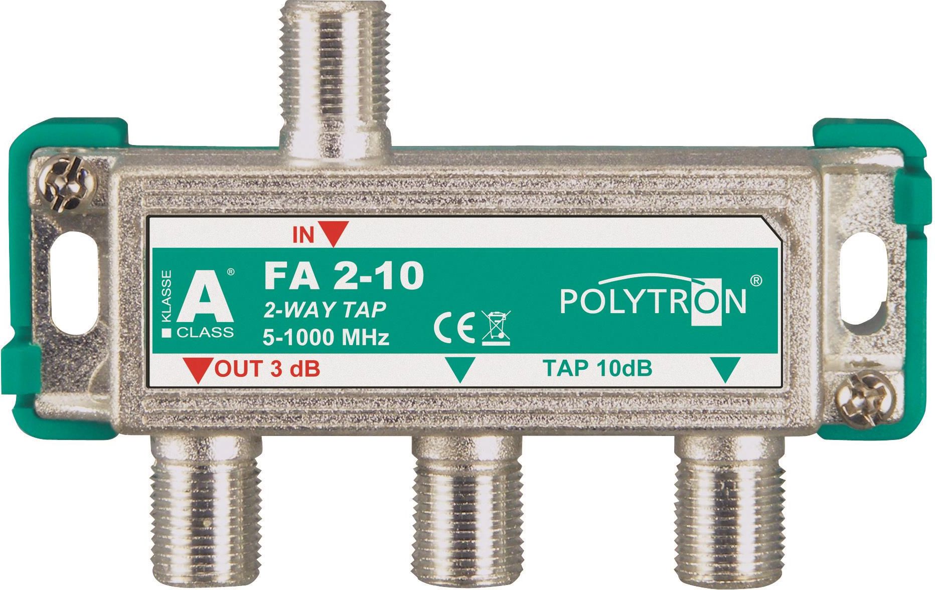 POLYTRON TAP FA 2-10 2-KROTNY 10 dB 5-1000 MHzPOLYTRON TAP FA 2-10 2-KROTNY 10 dB 5-1000 MHz charakteryzuje się wysoką jakością wykonania. Cechy szczególne: - doskonałe pasmo przenoszenia - wysoki współczynnik przesiewania > 100 dB w pełni lutowanym obwodzie - odporny na zakłócenia elektromagnetyczne EMI - plastikowe wsporniki do montażu na ścianie w zestawie - podłużne otwory mocujące - nadaje się do ścieżki zwrotnej kanału - zacisk uziemienia 4mm^2 DANE TECHNICZNE: Polytron to niemiecka firma z ponad 50-letnim doświadczeniem na rynku RTV-SAT. Firma produkuje wysokiej jakości sprzęt antenowy, multiswitche, akcesoria optyczne i modulatory. Głównym celem firmy Polytron jest jakość, wdrażane są też nowoczesne rozwiązania. Polytron oferuje swoje produkty o wysokiej jakości wykonania w przystępnych cenach! Jesteśmy dystrybutorem marki POLYTRON (kliknij aby poznać markę POLYTRON):