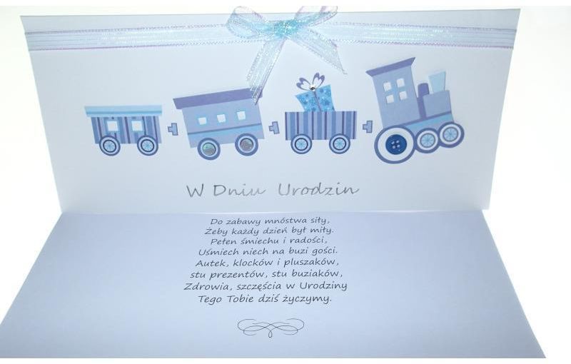 Produkt z Outletu: KARTKA KARNET W DNIU URODZIN POCIĄG DZIECIĘCY Z ŻYCZENIAMI Książki , zabawki Puszczykowo