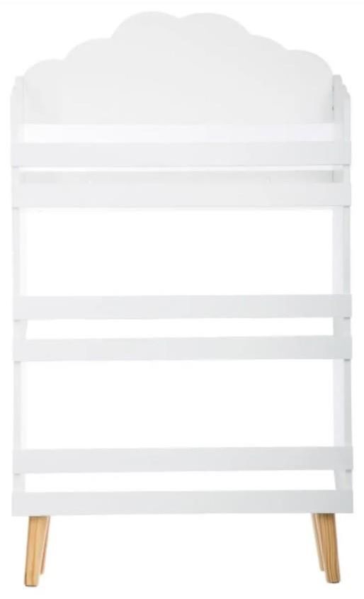 Regał Cloud to doskonały mebel do pokoju dziecięcego. Regał kończy się kształtem chmury, dzięki czemu zyskuje urok i zdobi pokój. Regał Cloud ma trzy półki zabezpieczone deską, więc nic z nich nie spadnie. Komoda ma około 100 cm, więc dziecko nie powinno mieć problemu z dosięgnięciem nawet do najwyższej półki. Regał Cloud stoi na drewnianych nóżkach, które pozostawiono w naturalnym kolorze, całość wykonana jest z płyty MDFi pomalowana na biało lub szaro.