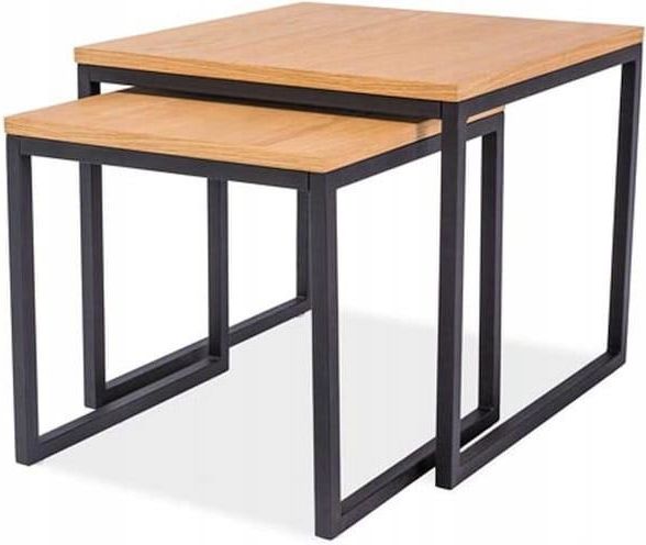 Zestaw stolików Largo Duo Zestaw dwóch ław w loftowym stylu. Idealne rozwiązanie dla mniejszych mieszkań. Ławy wykonane są z tych samych materiałów, różnią się jedynie rozmiarem. Doskonale prezentują się w dowolnej konfiguracji. Seria mebli Largo charakteryzuje się loftowym designem. Meble te są solidnie wykonane w minimalistycznym stylu. Połączenie czarnego metalu z prostym blatem daje nam w efekcie uniwersalne meble. Seria Largo ma również doskonałe rozwiązania dla małych pomieszczeń, gdyż potrafią zajmować niezwykle mało miejsca, a zarazem być bardzo użytkowe. Najważniejsze cechy: Loftowy, minimalistyczny design Zestaw 2 ław Grubość blatu 18 mm Maksymalne obciążenie - 15 kg Produkt do samodzielnego montażu Dane techniczne: Blat Materiał: MDF + okleina papierowa Stelaż Materiał: metal Kolor: czarny Wymiary: 1.Szerokość - 50 cmDługość - 50 cmWysokość - 45 cm Szerokość - 50 cm Długość - 50 cm Wysokość - 45 cm 2.Szerokość - 40 cmDługość - 40 cmWysokość - 40 cm Szerokość - 40 cm Długość - 40 cm Wysokość - 40 cm