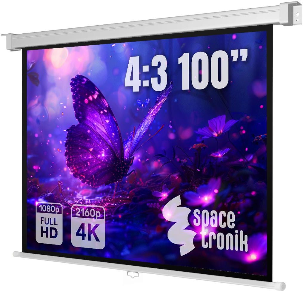 Spacetronik Ekran Projekcyjny Zwijany Manualnie 100" Cali 4:3 Pvc 1.0 Kąt Widzenia 150° Puszczykowo