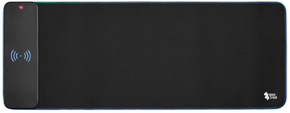 Mata gamingowa RGB Spacetronik SPB091_080_30 w rozmiarze 80x30cm z ładowarką Qi 15W, wodoodporną powierzchnią Mutispandex, antypoślizgowym spodem i efektownym podświetleniem. Idealna do gier i pracy.
