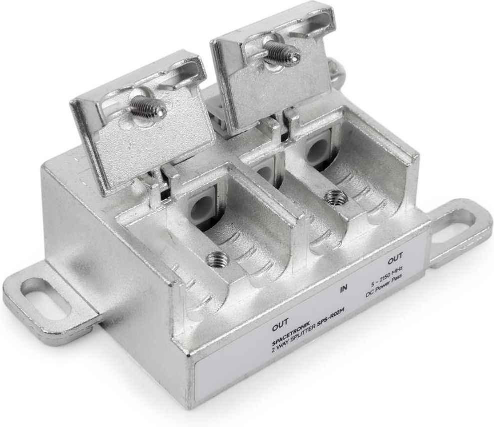 Rozgałęźnik antenowy 1/2 5-2150 MHz Spacetronik SPS-RS02M Wysokiej jakości małostratny ekranowany splitter, (rozgałęźnik sygnału telewizyjnego), posiadający 1 wejście i 2 wyjścia. Innowacyjny system połączeniowy Żyła przewodu antenowego jest wprowadzana bezpośrednio do rozgałęźnika, oplot przewodów przykręcany jest za pomocą śrub z pokrywą do obudowy. Podłączenie w ten sposób rozgałęźnika zwiększa niezawodność połączenia. Brak zastosowania gniazd typu F umożliwia redukcję wymiarów splitera. Dane techniczne: - Ilość wejść: 1 - Ilość wyjść: 2 - Częstotliwość pracy: 5...2150 Mhz - Współczynnik ekranowania: 5-2150 MHz ≥100dB - Wysoka izolacja, doskonały wskaźnik wydajności - Łatwy i szybki system połączeniowy - Solidna obudowa wykonana z odlewu - Małe straty sygnału - Przejście napięcia DC (DC Power Pass) - Zaprojektowany dla systemów SATV / CATV - Obudowa wyposażona w uziemienie