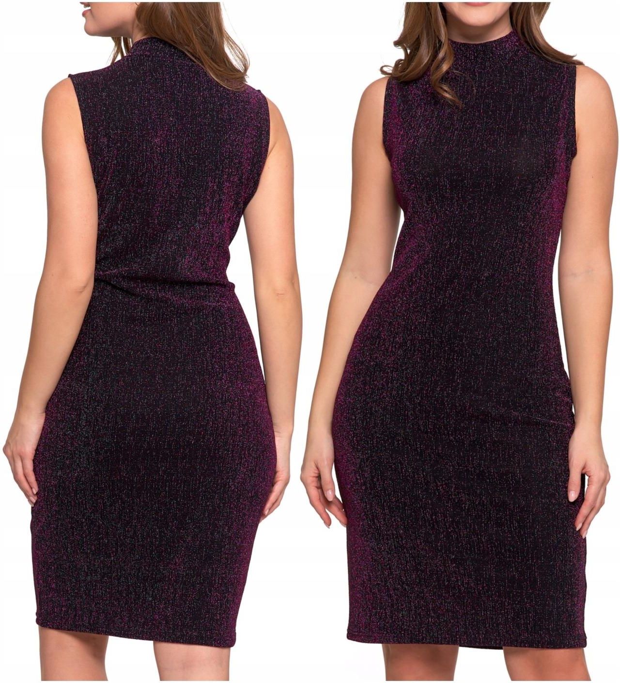 SUKIENKA DAMSKA MIDI BEZ RĘKAWÓW KOKTAJLOWA Z POŁYSKIEM DOPASOWANA MORAJ S Puszczykowo