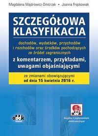 Szczegółowa klasyfikacja dochodów, wydatków, przychodów i rozchodów oraz środków pochodzących ze źródeł zagranicznych wprowadzona rozporządzeniem Ministra Finansów z dnia 2 marca 2010 r. (Dz. U. z 2014 r. poz. 1053 z późn. zm.) z uwzględnieniem zmian wprowadzonych rozporządzeniem MF z dnia 12 kwietnia 2016 r. (Dz.U. poz. 524), obowiązujących od dnia 15 kwietnia 2016 r., z mocą od dnia 17 lutego 2016 r.W publikacji zamieszczono: ujednolicony tekst klasyfikacji z zaznaczeniem zmian wprowadzonych nowelizacją z dnia 12 kwietnia 2016 r. – nowy rozdział 85211 „Świadczenie wychowawcze” oraz nowe paragrafy: 206, 216, 238, 634, 644 i 645, szczegółowe tabele zawierające najczęściej występujące podziałki klasyfikacji odrębnie dla dochodów i wydatków gmin oraz dochodów i wydatków powiatów, komentarze odnoszące się do źródeł dochodów i wydatków publicznych, przychodów i rozchodów, przykłady najczęściej planowanych oraz budzących wątpliwości paragrafów dochodów i wydatków wraz ze wskazaniem ich przeznaczenia. W opracowaniu wykorzystano opinie i uchwały regionalnych izb obrachunkowych, które stanowią niezbędną pomoc jednostkom samorządu terytorialnego w planowaniu i wykonywaniu nałożonych przepisami zadań.Suplement elektroniczny w formacie PDF ułatwia odszukanie odpowiedniego paragrafu klasyfikacji (plik można pobrać poprzez Internet – szczegółową instrukcję zamieszczono w książce). Powyższy opis pochodzi od wydawcy. Konstytucja, kodeksy, komentarze - jeśli tylko potrzebujesz poszerzyć swoją wiedzę w jakimkolwiek obszarze prawa polskiego to tutaj znajdziesz książki których potrzebujesz. Prawo cywilne, handlowe, karne czy administracyjne - to tylko wybrane tematy które możesz u nas znaleźć. Mole Mole to nowe, wyjątkowe miejsce na księgarskiej mapie Polski. To nowoczesne, przytulne małe księgarnie oraz sklep internetowy, przyjazne pasjonatom czytania, wielbicielom dobrej książki i literatury, ceniącym sobie wybór i przyjazne, nieśpieszne zakupy. W naszych księgarniach znajdziecie wyselekcjonowaną ofertę tytułów a na molemole.com możecie buszować wśród dziesiątek tysięcy pozycji książkowych. Nasz bogaty księgozbiór to moc inspiracji i publikacje z niemalże wszystkich dziedzin!