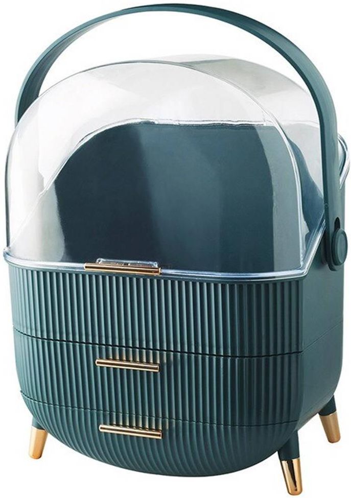 Organizer szkatułka na kosmetykiPraktyczny organizer na kosmetyki, biżuterię lub inne akcesoria dla każdej kobiety. Charakteryzuje się pojemnymi szufladkami oraz dużą gablotką na perfumy, balsamy lub kremy. Pozwoli zachować ład i porządek w podręcznych drobiazgach. Organizer wykonany został z akrylu w modnym kolorze, dodatkowo elementy w kolorze złotym sprawiają, że produkt prezentuje się ekskluzywnie. Przeźroczyste wieko pozwala z łatwością odnaleźć potrzebny kosmetyk. Znajdzie wiele możliwości zastosowania w naszym domu.Główne cechy produktu: Wykonana z wysokiej jakości plastiku Uporządkuje Twoje kosmetyki Ekskluzywny wygląd Solidne wykonanie Dwie szufladki Zajmuje mało miejsca Pomieści wiele najpotrzebniejszych drobiazgów Zestaw zawiera: Fabrycznie nowy organizer na kosmetyki Oryginalne opakowanie Specyfikacja: Organizer kosmetyki - MK-G1.G (okrągły z rączką) Stan: Nowy Model: G1 Kod producenta: CBXG1 Materiał: Akryl Kolor dominujący: Zielony Szerokość: 25 Wysokość: 34 Głębokość: 18